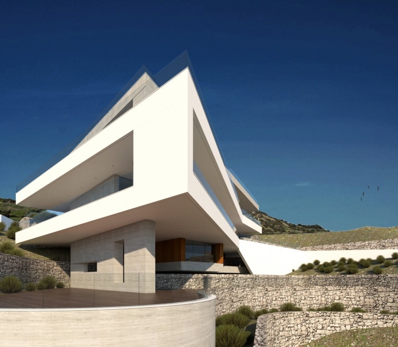 The villas are set upon a mountainside of Agios Tychonas near Armenohori village of the eastern Limassol suburbs, five minutes drive up from our Seasons hotel. Perhaps no other neighborhood will open to you such breathtaking vistas and the entire coastline of Limassol. The main concept of the project is to allow you to capture the immense scope of Cyprus, and at the same time, to feel that you are on the island where you may see the horizon from any point. The surrounding majestic views equal the supremacy of a luxury home. The very nature of the mountainous area and a very good location of the project have inspired our architects to construct a complex of villas, which from a distance seems weightless and even just soaring above the ground.