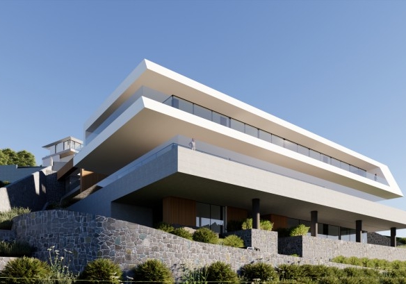 The villas are set upon a mountainside of Agios Tychonas near Armenohori village of the eastern Limassol suburbs, five minutes drive up from the Four Seasons hotel. Perhaps no other neighborhood will open to you such breathtaking vistas and the entire coastline of Limassol. The main concept of the project is to allow you to capture the immense scope of Cyprus and at the same time, to feel that you are on the island where you may see the horizon from any point. The surrounding majestic views equal the supremacy of a luxury home. The very nature of the mountainous area and a very good location of the project have inspired our architects to construct a complex of villas, which from a distance seems weightless and even just soaring above the ground.
