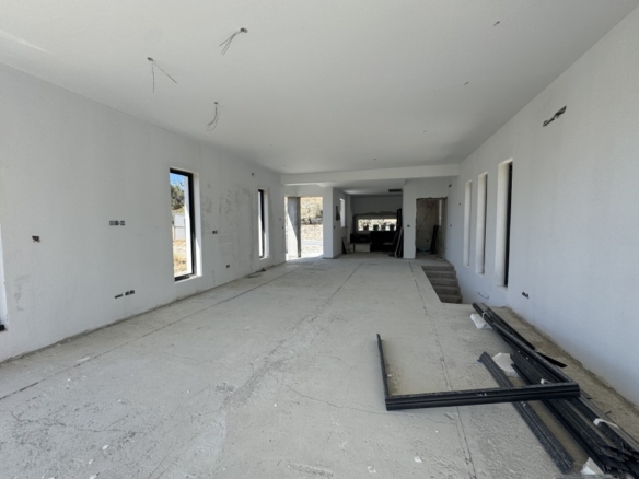 This villa offers 220 sqm of internal space with 4 spacious bedrooms and 3 bathrooms. This villa combines modern design with comfort, featuring a private 7x4m pool. The open-concept layout maximizes the flow between living areas, with large windows allowing for natural light and sea views. The villa includes luxurious finishes, smart home features, and underfloor heating for an unparalleled living experience. It’s an ideal family home offering tranquility and luxury living in an exceptional location.