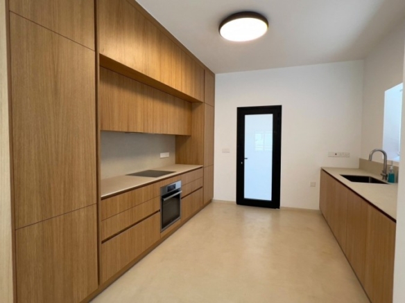 This stunning 3-bedroom home, fully renovated to the highest standards, is situated on a quiet dead-end road in the prestigious Agios Tychonas area of Limassol. With an internal area of 120 sq.m and an expansive 230 sq.m of outdoor space on a 440 sq.m plot. Inside, you’ll find three spacious bedrooms and three modern bathrooms, each featuring Grohe fixtures and showers. The open-plan kitchen is equipped with brand-new electrical appliances, including a stove, hood, dishwasher, refrigerator, and oven. Energy-efficient aluminum windows and doors, as well as new concrete flooring throughout. Every room is fitted with energy-saving air-conditioning units, and a 4kW solar panel system, along with a new solar water heater, ensures significant savings on electricity bills. The renovation included updates to the plumbing, electrical system, and a completely sealed roof, ensuring the house is move-in ready and maintenance-free.