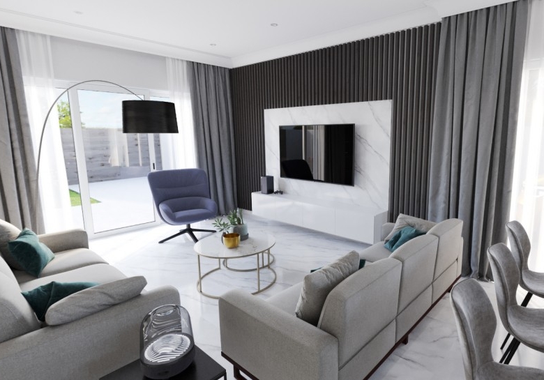 Nestled within a serene and private community of just nine modern homes, this energy-efficient Grade A residence offers the perfect blend of contemporary comfort and peaceful village living. Designed with families in mind, the neighborhood is quiet, safe, and surrounded by lush greenery, creating a calm retreat from the bustle of city life. The home features three bedrooms—including a master with ensuite bathroom—along with three WCs and two baths in total, ensuring both convenience and privacy. Its spacious, open-plan living area is filled with natural light and flows seamlessly into a private garden, ideal for relaxation or entertaining. Built with modern comforts at the forefront, the house includes double glazing, provisions for air conditioning, central heating, solar panels, and electric roller blinds, as well as a pressurized water system. A true haven that combines style, efficiency, and tranquility, ready to welcome you home.