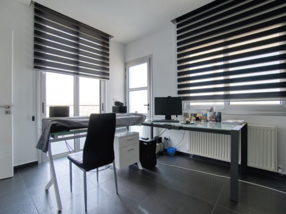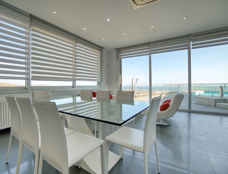 This stunning 360-degree view villa, located in the prestigious Agios Athanasios area (Sfalagiotissa), offers an unrivaled position with panoramic views of the entire city of Limassol. Set on an 860 sqm plot elevated above the road, it provides complete privacy. The villa features three kitchens, including a main kitchen, a small kitchen on the ground floor, and another in the basement. The master bedroom is en suite with a dressing room, and all first-floor bedrooms are equipped with electric shutters. The main bathroom includes both a shower and a corner bath. The basement offers two covered parking spaces, a WC, a small kitchen, a small room, and additional storage. Outside, the ground floor includes two uncovered parking spaces, a 5×10 overflow swimming pool with 8 jets for hydro massage, a BBQ area, and a garden. The property is equipped with petrol heaters, air conditioning units in all rooms, and a water softener system, ensuring year-round comfort and convenience.