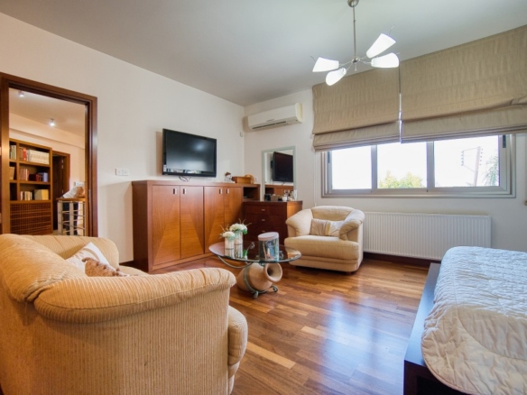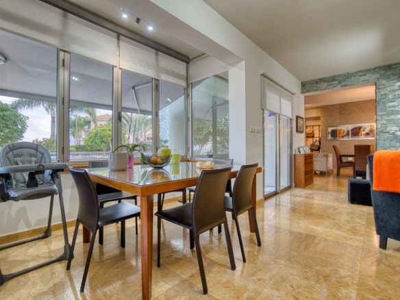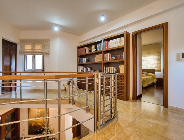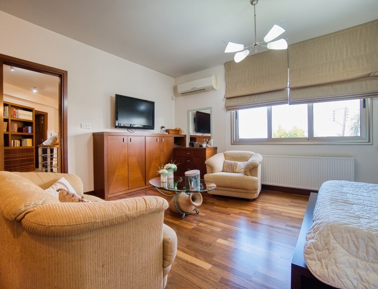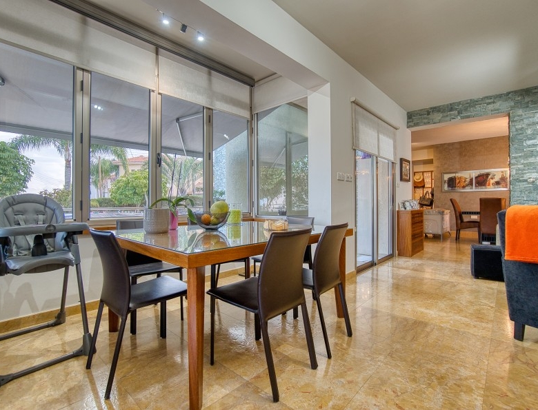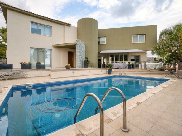 Luxury modern villa for sale in Ag.Athanasios area Limassol a few minute’s drive from new Foleys school. The villa has an internal covered area of 500 sq.m. It comprises of living and dining area, a kitchen and guest toilet on the ground floor and four bedrooms en-suite, and a bathroom on the first floor. There is also an en-suite bedroom and a machine room by the covered parking space. The asset enjoys the use of a private swimming pool. It has been constructed with good quality materials and has double glazed windows, split units, and central heating installed. The wider area of the property comprises residential developments with great accessibility due to its proximity to the motorway.