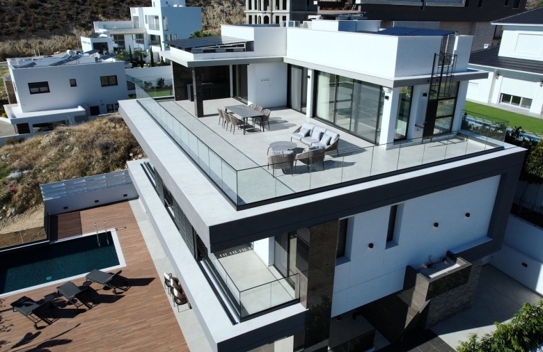 Six bedroom villa, 3 of them are en-suites , Master Bedroom En-suite with walk-in wardrobe, maids ensuite with separate entrance on ground floor)4 floors590sqm of internal areas + covered verandas + roof garden with bbq area .Indoor + outdoor swimming pools salted water (indoor heated) + indoor Jacuzzi for 10 persons + custom made saunaGym roomLaundry dedicated roomCinema room with 4k projector + advanced audio systemsServer room35 sqm kids playroom/guest room3 fully covered private parkingsFully automation (Smart house) – Crestron full control of lightings , curtains , blackouts , 4k video distribution system , built in speakers in all areas including bed rooms , living room , indoor pool area , gym , garden and roof garden , full control of underfloor heating systems and a/cUnderfloor heating water-based pumping in all areas of the house VRV A/C concealed units in all areas of the houseFully designed false ceilingsWifi Access pointsElectric secure entrance doors (Option to open them via chips/mobiles)Water pressure pump, softner , hot water circulation system , solar panelsPhotovoltaicElevator for all levelsHigh standard finishesAlarm and cameras systems system includedDecorative lighting in all spaces of the houseFull sea viewsVery quiet and well located neighborhood , surrounded by private new housesAreas (SQM)Ground Floor281 internal18 garden58 covered parkings33 mechanical roomFirst Floor127 internal342 garden41 covered verandaSecond Floor127 internal34 covered verandaThird Floor55 internal104 roof garden