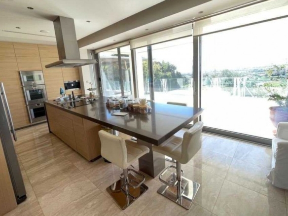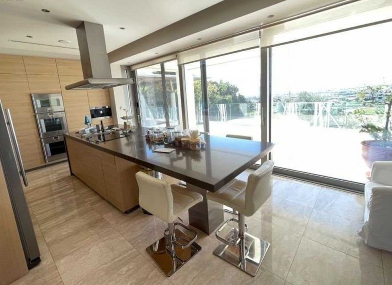 This stunning 5-bedroom villa, designed by a famous architect, is located in the serene area of Erimi, just 6 minutes away from the Troodos roundabout and 12 minutes from Limassol’s city center. Offering breathtaking views of the countryside and the sea, this villa is a must-see for those seeking luxury and tranquility. Situated on top of a hill, where the humidity is minimal and just 10 minutes away from the sea, this villa provides an ideal living environment.This eco-friendly home boasts a range of impressive features, including a geothermal system and a 55kVA (Kilovolt-Ampere) generator set that covers all house needs. The property includes a heated swimming pool, 18 meters in length, perfect for year-round enjoyment. An elevator provides easy access to all floors, and an eco-fireplace adds warmth and ambiance to the living spaces.The smart house system allows you to control audio and video, lighting, shutters, and heating effortlessly. The villa is equipped with two satellite dishes, a central air-conditioning system, and underfloor central heating, ensuring maximum comfort throughout the year. The spacious garage accommodates two cars, while a gym and playroom offer additional recreational options.The villa features two personnel apartments on a separate basement floor, providing convenient and private accommodation for staff. A dedicated laundry area and a barbecue space add to the functionality of the home. The monitored entrance access, along with a security system with 8 smart cameras, ensures the highest level of security.For added convenience, the property includes two artesian wells, each 120 meters deep, and a beautifully landscaped garden of 500 m². The garden area features a changing room, toilet, and shower next to the swimming pool, enhancing the outdoor living experience.This villa in Erimi, with its unlimited views of the sea and surrounding area, truly epitomizes luxury living. With its eco-friendly design and state-of-the-art features, it offers a perfect blend of modern convenience and natural beauty.
