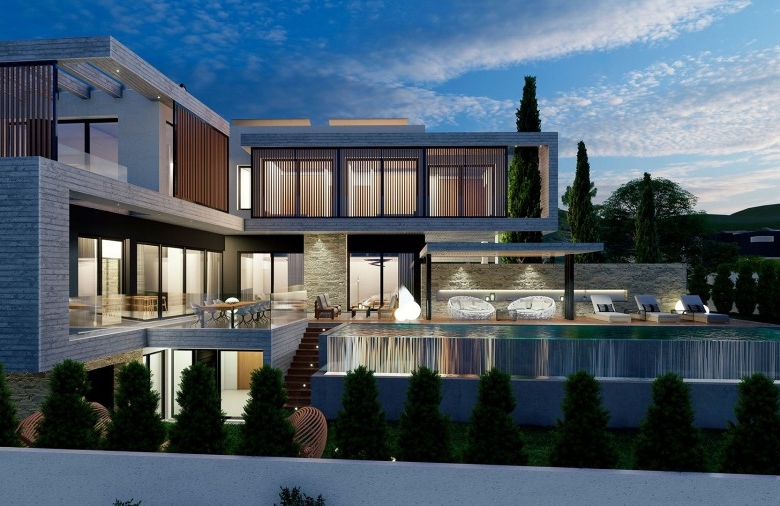 An elite spacious villa with a unique architectural design in a modern style, with 6 bedrooms and an Infinity overflow pool. The luxurious residence is located in the prestigious suburbs of Limassol, in the picturesque area of Kalogiry. The villa harmoniously integrates into the natural landscape, which allows you to fully enjoy the breathtaking views and mountain landscapes. It consists of 3 levels: basement, ground floor (first floor), and the second floor. The property includes a swimming pool, a solarium area, a beautiful garden, and a spacious place for relaxation and a barbecue in the surrounding area. There are also two parking lots and an under-roof garage for two cars. The perfect layouts and high-quality construction and finishing materials will impress the most demanding customer. The villa is located in the city, in a beautiful, quiet place in the prestigious Kalogiry district. There are good neighborhoods, beautiful views of the surroundings and mountains, and the Russian Orthodox Church of St. Nicholas nearby.