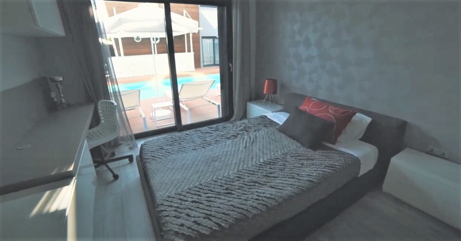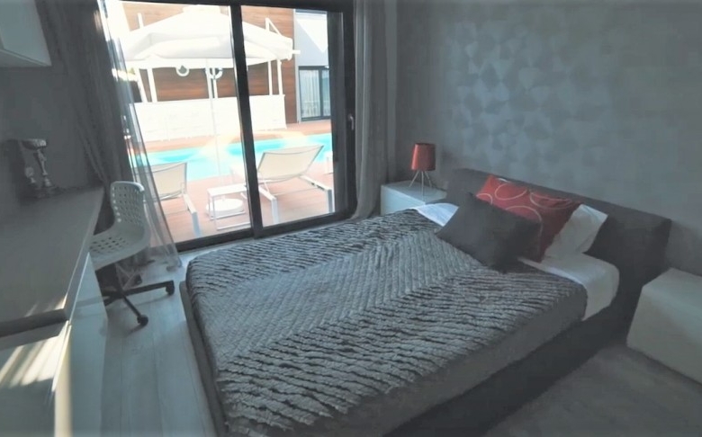 A really unique villa for sale that above all is offering calmness, full privacy and safety. It is located in the beautiful and historical village of Kolossi, just 10 kilometres from Limassol and only 2 minutes from the central highway. There are supermarkets, bakeries, pharmacies, banks, restaurants and more nearby. In an area with a rapid growth and development, with distance just 8 minutes from the new casino “City of Dreams Mediterranean”. The villa consists of two floors: on the ground floor there is separate fully equipped kitchen, spacious living room connected with dining area, built-in aquarium, guest WC, master bedroom en-suite with walk-in wardrobes and another three bedrooms (one en-suite with shower). On the first floor three are three bedrooms including maid’s room, shower, guest WC and library. Also there is gym room, sauna, swimming pool, Jacuzzi, fountain, outdoor toilet with shower and indoor/outdoor bar. It has all the comforts plus alarm and CCTV system, solar panels, double glazing and covered parking. Golden opportunity for a serious investor!