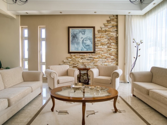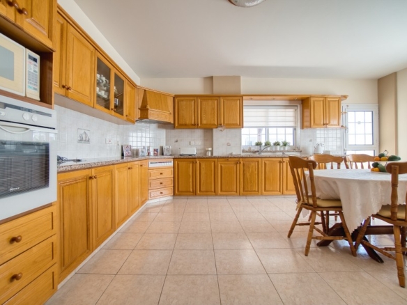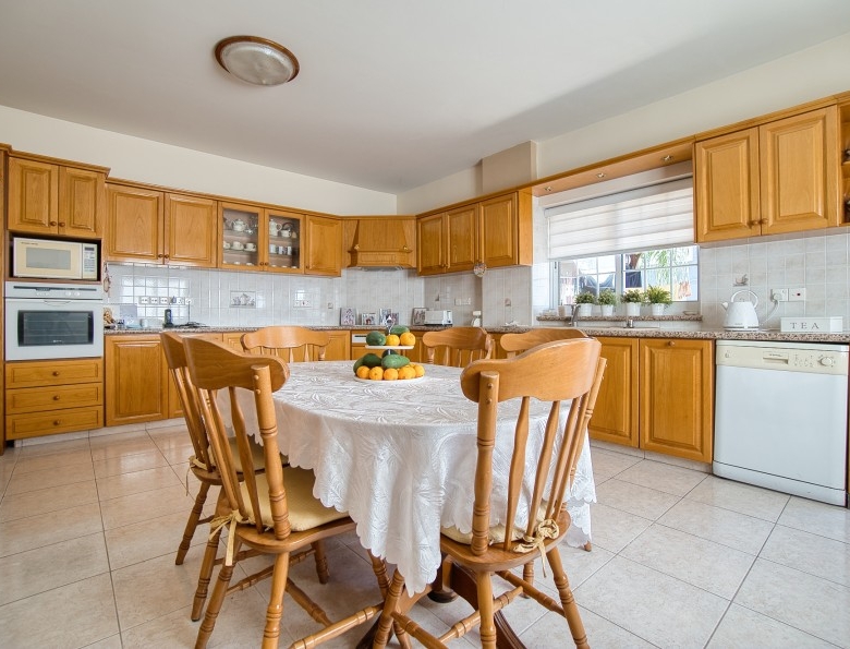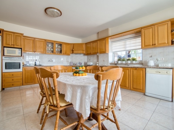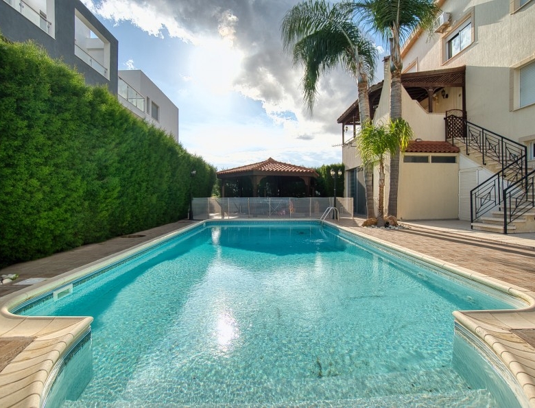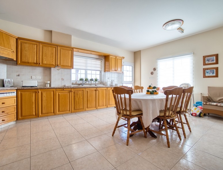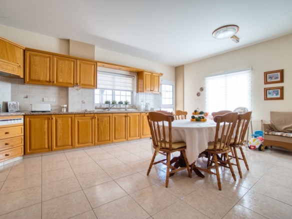 This villa is in a quiet residential street in the area of Laiki Lefkothea, fifteen minutes’ drive north of the town centre and with essentials a short drive away. The house consists of an open plan living/dining area, separate kitchen opening on a spacious terrace BBQ area, utility room, office space and guest wc. The first floor accommodates four bedrooms, master en-suite, family bathroom and an extra room currently used as a sitting area. Externally there is a 5mx10m swimming pool, and a garage. Also there is an extra room with WC and shower. On the lower ground level there is a a two bedroom apt. of around 140m2 with separate entrance. Has been renovated last September. No pets.