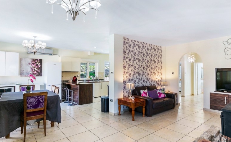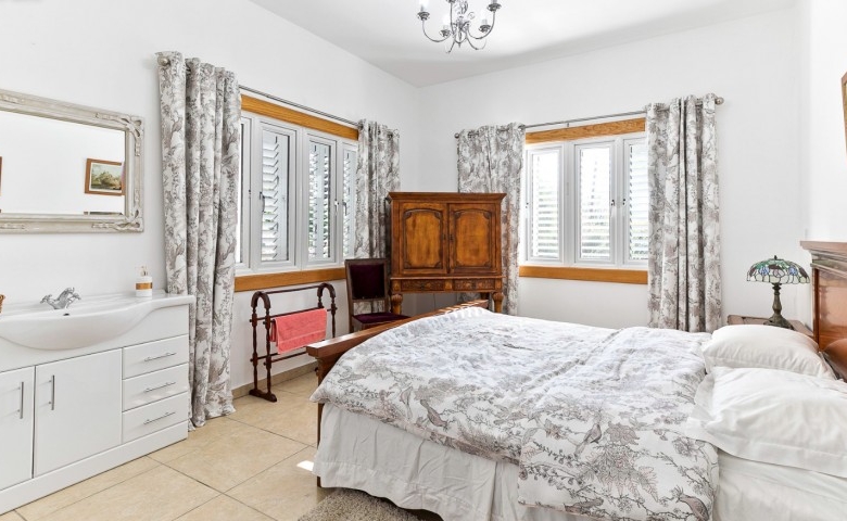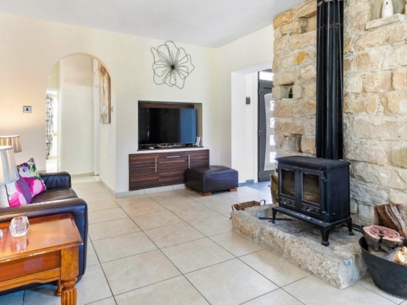 Cozy 5 bedroom villa in Laneia village – one of the most picturesque villages in Cyprus with its stone buildings and quaint cobbled streets, the village has inspired many Artists, some of whom reside in the Village. It feels like a million miles from the hustle and bustle of Limassol City, but located just 20 minutes from the city and pristine beaches. Located just on the outskirts of the Village this amazing house offers privacy, space and views of the Troodos Mountains. All amenities are in close proximity including top class International Schools (just a 10 minute drive away). The house is located above the humidity line at 580 metres above sea level. This newly renovated and spacious home is accessed via covered parking through bespoke double doors into a good sized hallway. The indoor living areas provide easy living with many seating and dining options. The kitchen is beautifully fitted to a very high standard On the ground floor there are two large double bedrooms with a well presented bathroom. Upstairs there are a further 3 bedrooms, two with en – suite facilities. All benefit from fitted wardrobes and excellent views from the windows and balconies. Outside the breath-taking views can be admired from several seating areas both covered and uncovered , including a large terrace/outdoor living area where residents would dine and relax for 10 months of the year. A newly designed and fully fitted outdoor kitchen further adds to the appeal of this delightful home. A large, well maintained swimming pool with Roman steps is surrounded by stunning stone walls and of course the views can be seen from all aspects of this delightful home.
