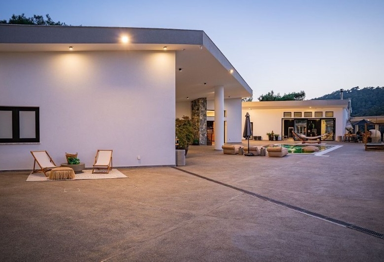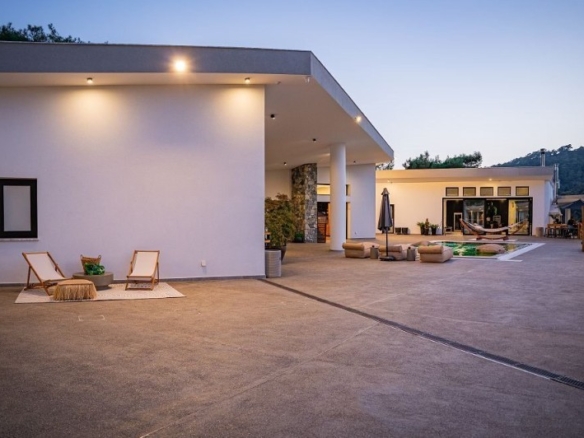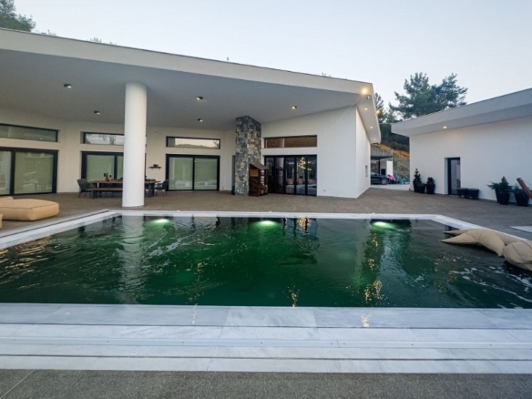 A stunning single-level villa set on a vast 13,156 sqm plot, offering absolute privacy and breathtaking views of the surrounding forest and mountains. The 250 sqm main residence features high ceilings, a spacious kitchen, elegant dining and living areas with a fireplace, and 4 en-suite bedrooms. Two fully independent guest houses with private bathrooms provide additional space for visitors or staff. Outdoor living is equally impressive, with a private overflow pool, large BBQ and dining areas, shaded pergolas, and a beautifully landscaped Mediterranean garden. Blending stone, wood, and glass, the architecture seamlessly connects indoor comfort with natural surroundings. Just a short drive from the city and beaches, this residence is more than a home—it’s a lifestyle retreat.