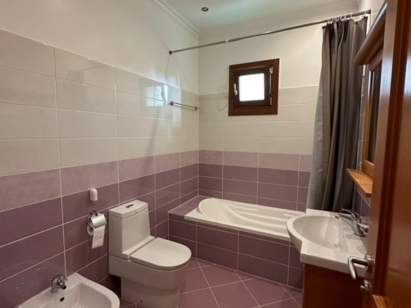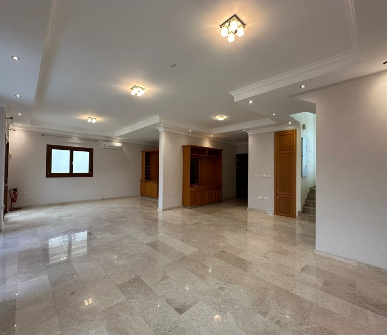 This spacious four-bedroom villa is located in the Mouttagiaka area, offering beautiful views of the surrounding mountains and neighborhood. Conveniently positioned near the tourist zone, the seafront, a main roundabout, and essential infrastructure, the villa is spread over three levels. The ground floor features a large open-plan living area with a kitchen, entrance hall, guest toilet, and access to a generous veranda. The living room is enhanced by floor-to-ceiling windows and a fireplace. The first floor includes three bedrooms, with the master bedroom offering an en-suite bathroom with a shower and a walk-in wardrobe, while the other two bedrooms share a family bathroom and have built-in wardrobes. This floor also has a veranda overlooking the pool and garden. The lower level includes a spacious, naturally lit area with large windows, an additional bedroom, a bathroom with a shower, a separate laundry room with washing and drying machines, and a storage room. Outside, there is a swimming pool, landscaped garden, covered and uncovered parking, and an external staircase leading to the first floor. Additional features include air conditioning in all rooms, decorative lighting, laminated parquet floors in the bedrooms, kitchen appliances, electric gates, and double-glazed windows. The property sits on a 620 sq.m. plot with a total internal area of 300 sq.m. and comes with title deeds.
