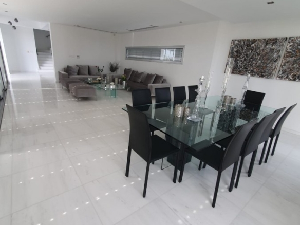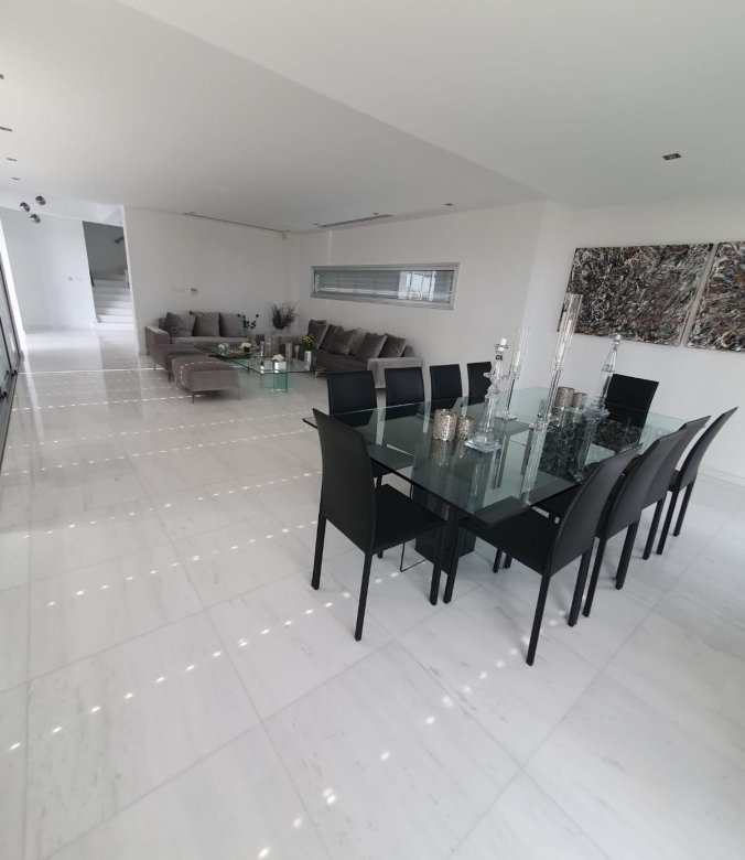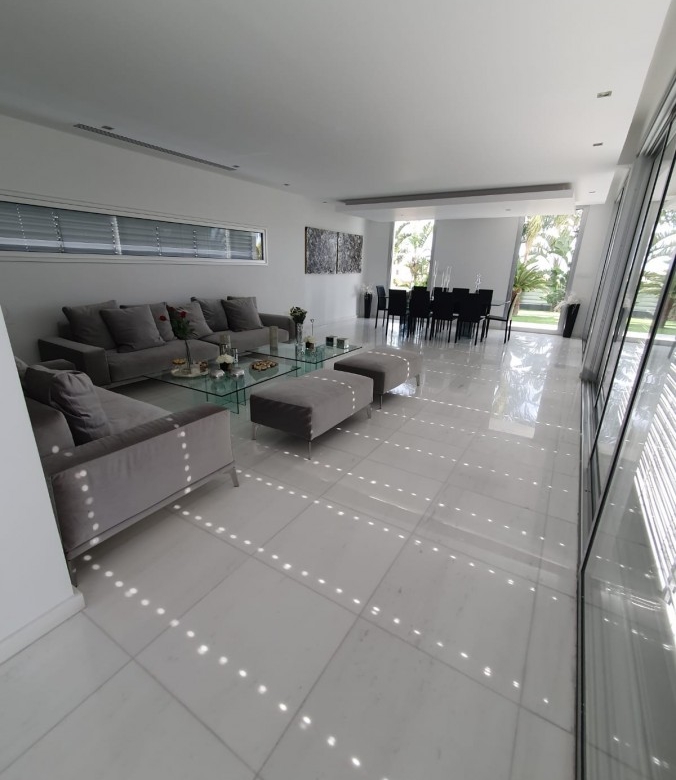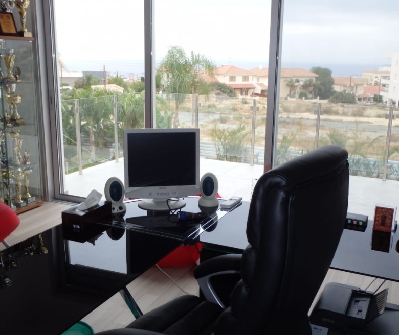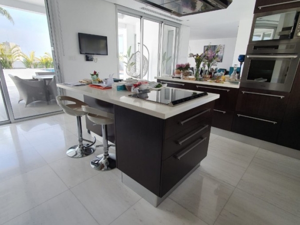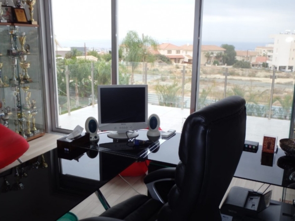 Modern 5 bedroom house for sale in Panthea, Limassol. The house is located in a quiet area with city and sea views and a short drive to the beach and amenities. The first floor consists of 3 bedrooms with 2 en suites while master bedroom has walk in closet, seating area and family bathroom.