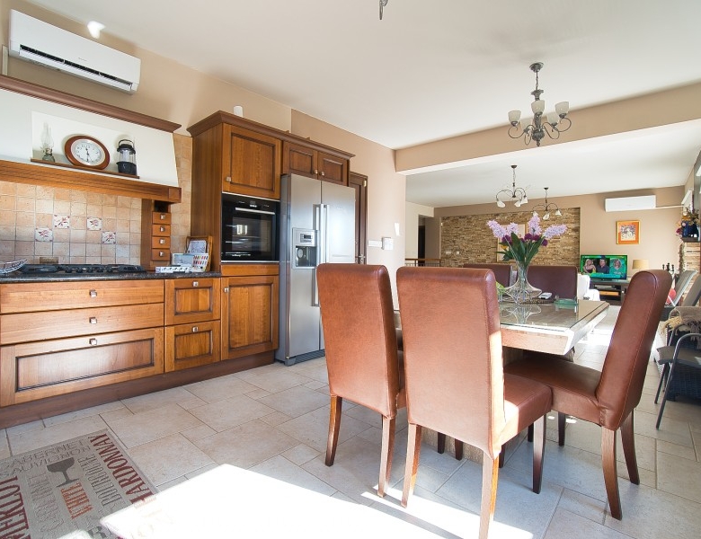 Nestled amidst the lush green forests and mountains of Pera Pedi, this detached house offers a serene retreat surrounded by nature and fresh air. Located in a peaceful position within the friendly village, the property is conveniently just a 5-minute drive from a supermarket, coffee shop, bakery, and petrol station. Troodos is only 15 minutes away, and Limassol is a short 30-minute drive, providing easy access to both leisure and city life.This two-storey house combines comfort, space, and potential. The upper floor, accessible from the main entrance, features an open-plan kitchen seamlessly connected to a spacious living room with a cozy fireplace. Large verandas extend from this level, offering breathtaking panoramic views of the surrounding mountains. The same floor includes three generously sized bedrooms, a main bathroom, and a guest toilet.On the lower floor, the house offers access to a private swimming pool with a spacious outdoor area, perfect for relaxation and entertainment. The outdoor space includes a private green park with trees and plants, a BBQ area, and a gazebo, making it ideal for hosting gatherings or enjoying quiet moments in nature.This level also houses a fourth bedroom with a bathroom and has the potential to create an additional bedroom if needed. The layout provides flexibility, with ample space for a gym, office, or recreational area. An additional fireplace with a cozy TV area and an open-plan kitchen add to the convenience and functionality of the lower floor.The property includes modern features such as photovoltaic panels and central heating, ensuring comfort year-round. It is being sold fully furnished and equipped, offering immediate usability. While the house needs renovation, its incredible location, spacious layout, and numerous possibilities make it an excellent investment for a permanent residence, holiday home, or retreat.This is a rare opportunity to create your dream home in the heart of Pera Pedi, surrounded by nature yet close to essential amenities.