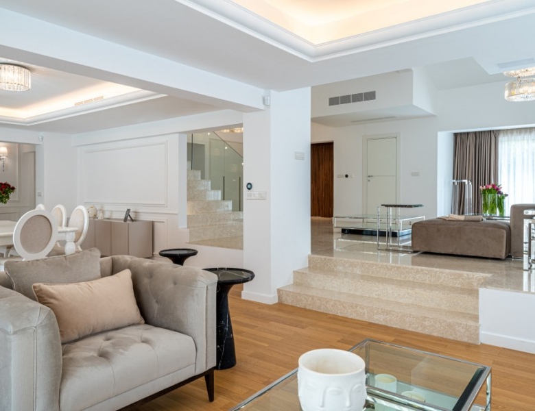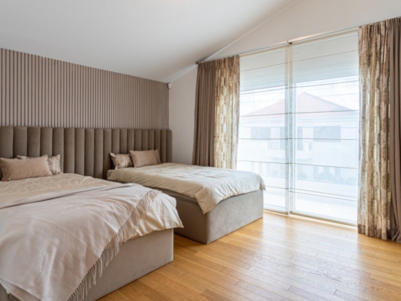 Located in the desirable area of Potamos Germasogeia, this stunning 4-bedroom detached house offers unparalleled luxury and modern conveniences, perfect for the discerning homeowner seeking comfort and elegance in Limassol. This stylish villa boasts a private swimming pool measuring 8.5m x 3m, providing a serene oasis for relaxation and entertainment.Upon entering the ground floor, you are greeted by a grand entrance with a double-height ceiling. This level includes a guest WC, two spacious living rooms, and a dining area with a pool view. The separate kitchen is perfect for culinary enthusiasts, and the maid’s room features a private shower and WC. Additional amenities on this floor include a laundry room, a spacious guest bedroom with an ensuite bathroom, and a storage room.The first floor offers 3 beautifully appointed bedrooms. The master bedroom features a walk-in closet, and the main bathroom boasts a freestanding bathtub. Another two bedrooms have ensuite bathrooms each, providing ample privacy and convenience for family members or guests.This home is equipped with a VRV system with concealed ducts in the ceiling. Underfloor heating is installed throughout the house, powered by two rooftop machines. The roof houses a water filtration system for the entire house and solar panels, with the option to install photovoltaic panels for added energy efficiency.Security is paramount with an advanced system featuring internal motion sensors, window and door magnets, and external surveillance cameras. The garage, equipped with automatic lighting, provides space for two cars and electric entrance gates, ensuring convenience and safety.This modern and stylish villa in Potamos Germasogeia is the epitome of luxurious living, offering a perfect blend of comfort, elegance, and cutting-edge amenities.