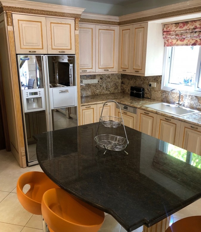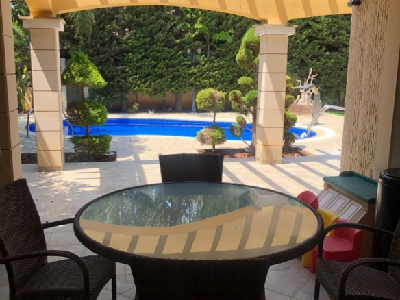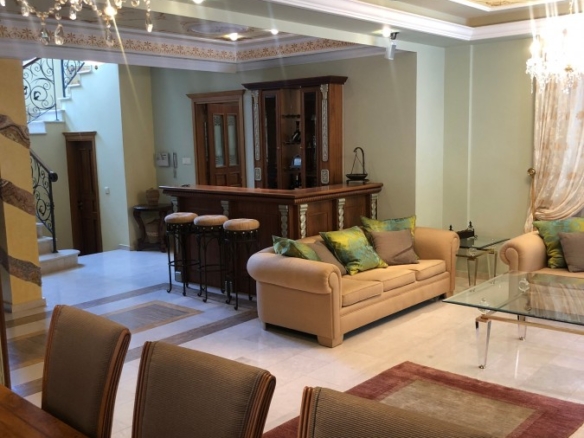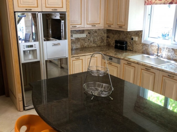 A beautiful 4-bedroom villa in a great location right across the beach in Germasoyia area Limassol available for sale.Located in one of the best complexes in Limassol, just walking distance to the beach, restaurants, shops, schools, cinema, banks etc. Constructed in 2010 this villa has all the luxury one needs. Open plan sitting areas with bar, large kitchen area with laundry and a closed private parking. Covered BBQ area at the pool site with mature garden. A sauna and jet shower room. Large ensuite bedroom with walking wardrobe and decorative cornice on the ceiling in most rooms with hidden lights in the Falce ceilings and handmade paintings on the walls.Fully furnished with high quality furniture, large wardrobes in bedrooms and wood parquet floors.