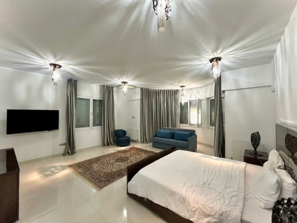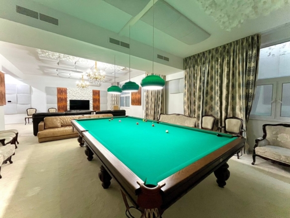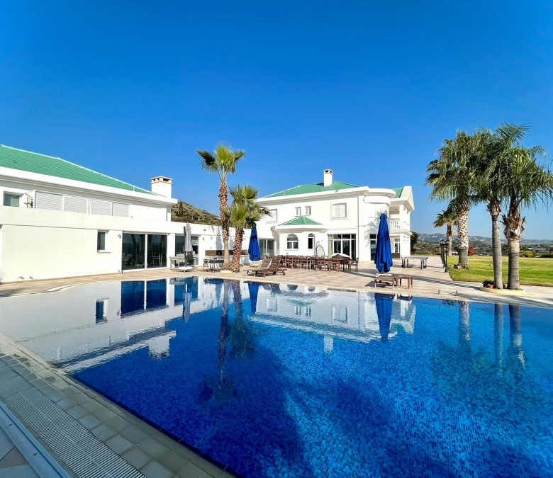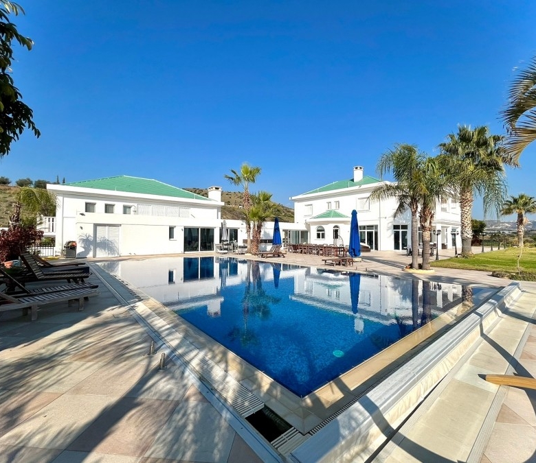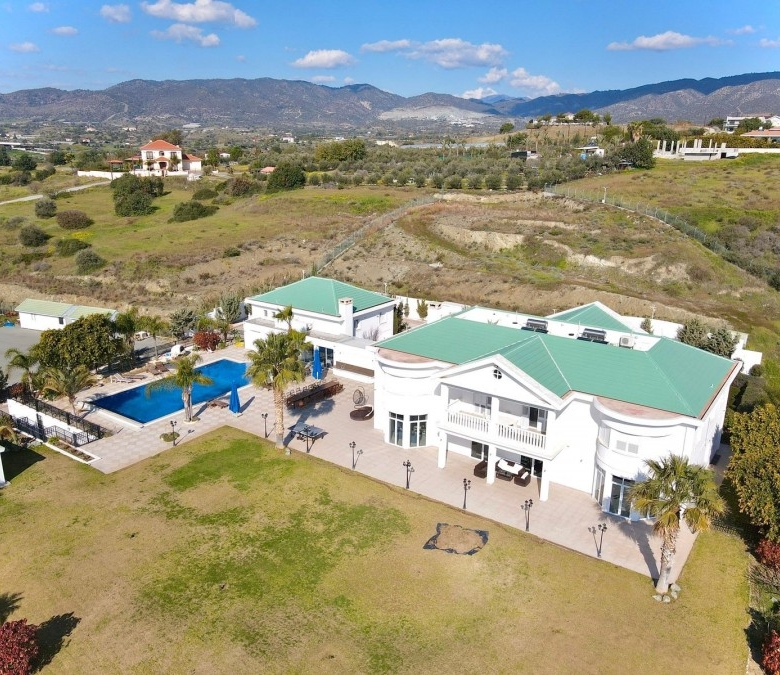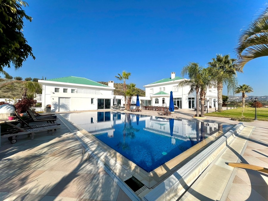 This state of the art house is located in the area of Pyrgos and it probably is the biggest house available for sale in Limassol at this moment.With construction year of 2010 and delivery date in 2013 this house is less than 10 years old and it is situated in a plot of land of more than 9000sqm of usable area. The garden and the backyard area of the house is large enough to ensure that any potential buyer can use this space either to create a basketball or a tennis court or any other facility. Additionally, the house has a private parking space with the capacity to accommodate more than 30 cars and a driveway which can fit probably another 5 or 10 vehicles and a closed garage.The pool is approximately more than 100sqm, it can be fully covered with blanket during winter times and it has been decorated with mosaic tiles which gives that high-quality touch to the finish of the pool.Each room on the main building has a walk-in wardrobe and an en-suite bathroom or a bath tub.