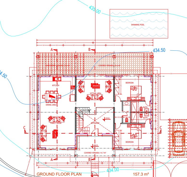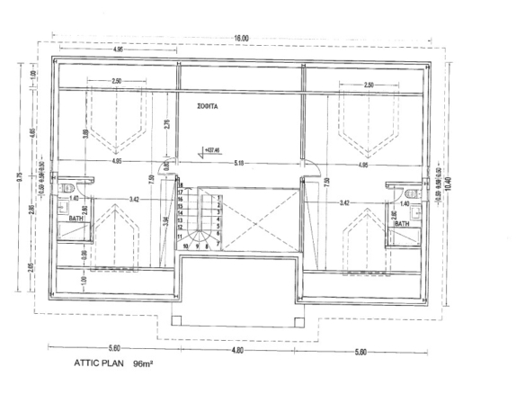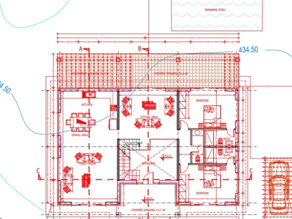 The house with 4 bedrooms, 5 bathrooms, kitchen/dining area, living room and a large uncovered veranda on the upper floor.The plot is 750 m2 and the total covered area of the house is 274 m2.