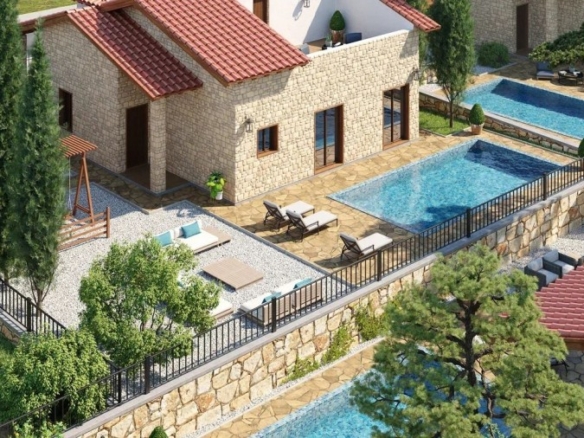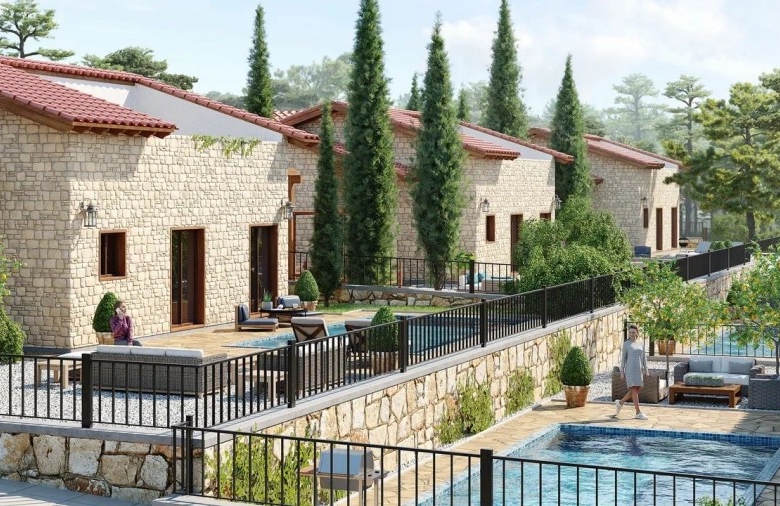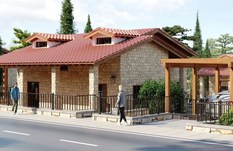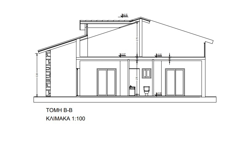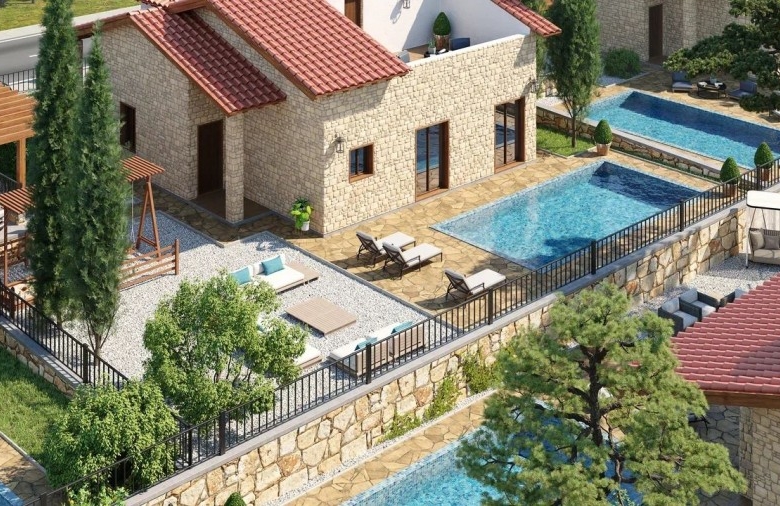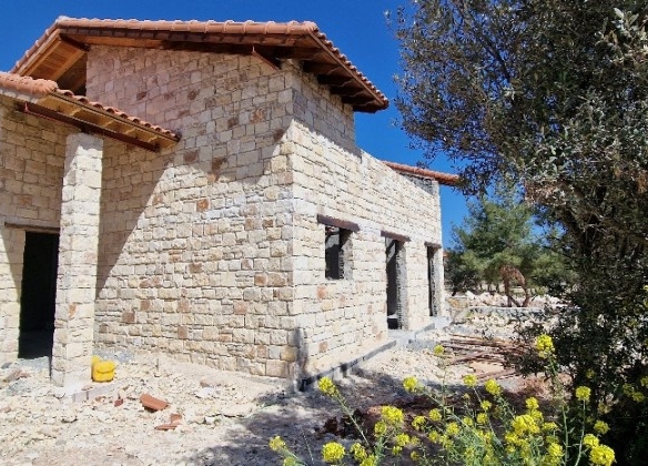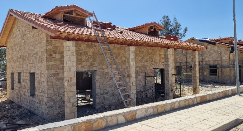 The house with 4 bedrooms, 2 bathrooms, a kitchen/dining area, a living room, and a large uncovered veranda on the upper floor. The plot is 500 m2, and the total covered area of the house is 199 m2.