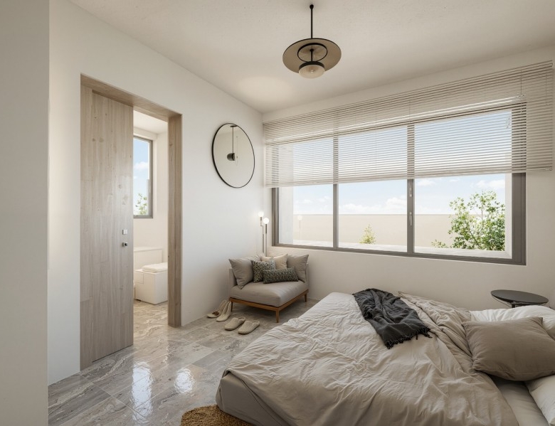 The project offer both tranquility and sleek contemporary design located in Souni, Limassol. Three – bedroom independent house has1 on the ground floor & 2 upstairs – all ensuite. The propery owns private swimming pool & deck, private veranda for relaxing outdoor living.In the villa there are underfloor heating | PV panels | Energy Efficiency A.Peaceful surroundings, modern comfort, and elegant style, all in one place.