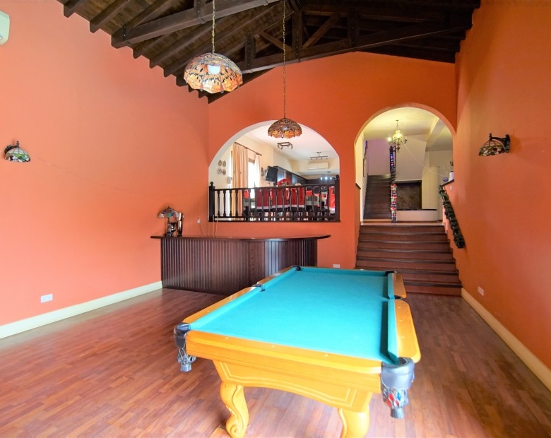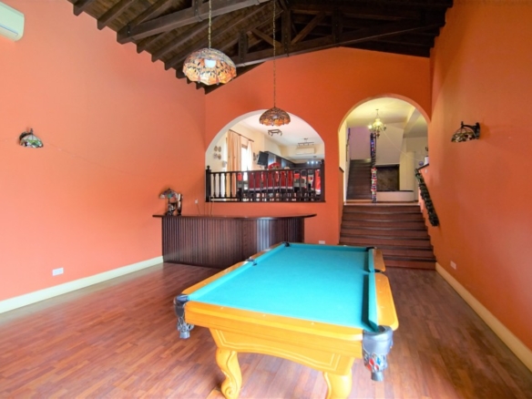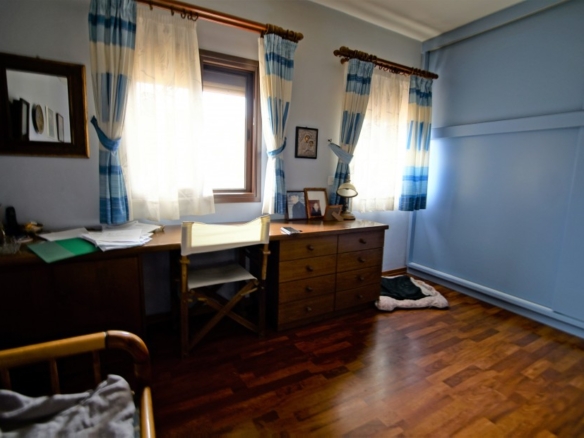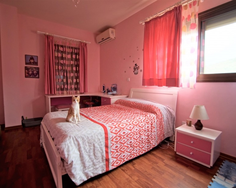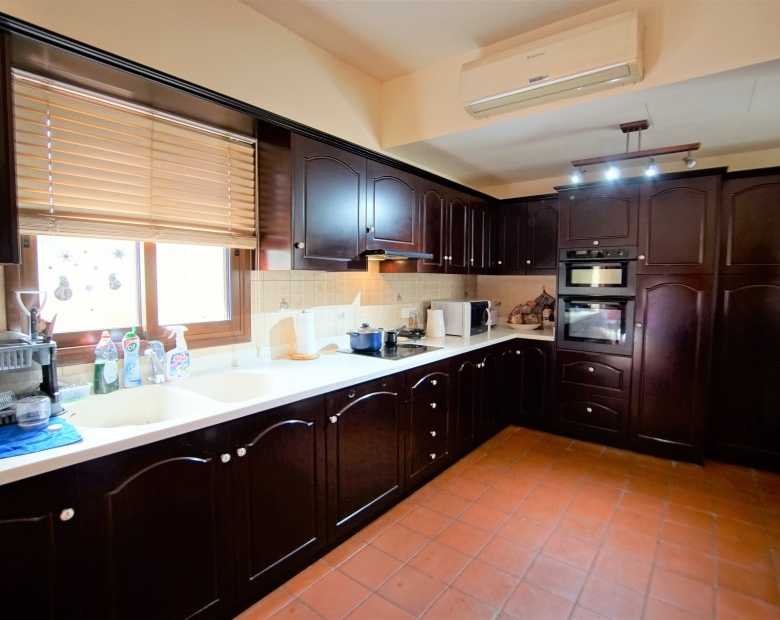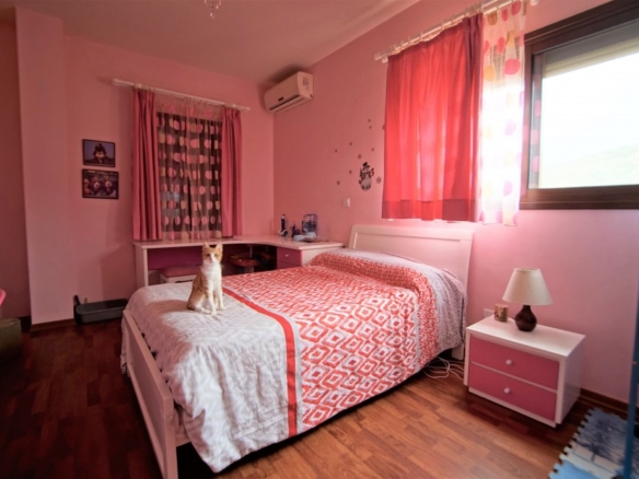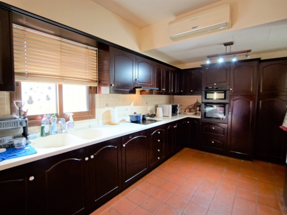 Α 4 bedroom detached villa for sale in Germasogeia, Limassol. It is located in a quiet area with sea views. The house is split over 2 levels with provision for a third floor. The ground floor consists of an entrance hall with water feature, an elevator, separate living room, open plan kitchen with dining area and a separate open space with feature wooden ceiling currently being used as a game room with bar and guest WC. The first floor has 4 bedrooms including master with en suite and jacuzzi, family bathroom also with jacuzzi. Outside there is a spacious veranda overlooking the sea, private swimming pool and extra guest WC with shower.