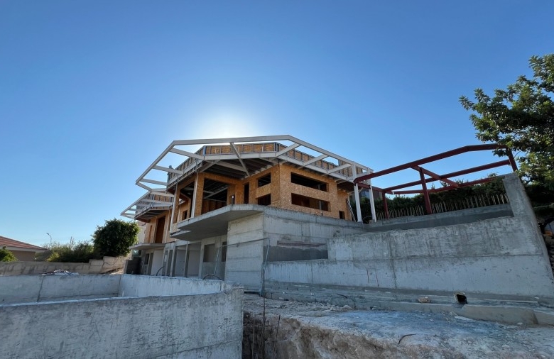 Located in the scenic hillside suburb of Germasogeia, Limassol, in the prestigious Agia Paraskevi area, this partially completed villa combines luxurious design with family-oriented comfort. Offering panoramic, unobstructed sea views, the property allows the future owner to tailor the final finishes, including room sizes and layout, to personal taste. Spanning a 1,104 m² plot with 520 m² of interior space, the villa includes a basement with storage rooms, a three-car garage, maid’s quarters, spa and gym facilities, sauna, and workshop; a ground floor with expansive living and dining areas, kitchen, laundry area, two guest W.C.s, and five ensuite bedrooms with walk-in wardrobes; and a first floor with a private office suite and a 250 m² roof deck featuring a bar and lounge overlooking Limassol and the Mediterranean. Additional highlights include two swimming pools, an elevator, BBQ area, 14 m² of balconies, 58 m² of semi-covered veranda, and a 25 m² M&E area.