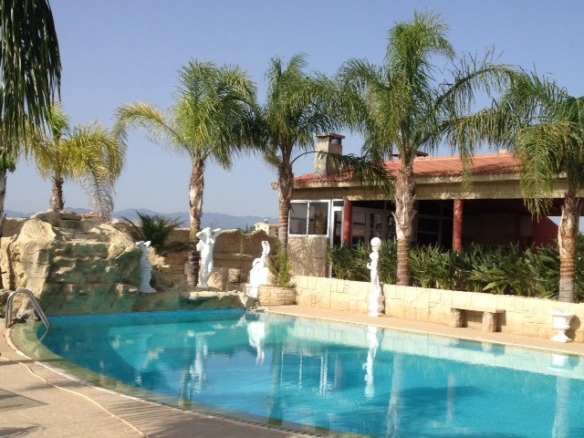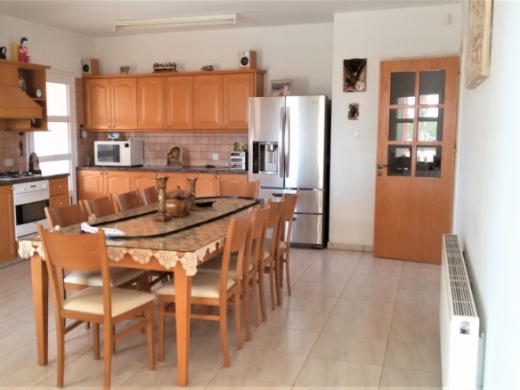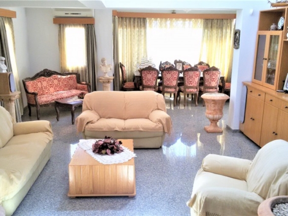 A 4 bedroom villa for sale in Palaiometocho, Nicosia. It has open-plan living rooms, two kitchen. Central heating in all the house. House offers 2 covered parking, covered terrace with barbecue area, a private swimming pool and wonderful garden along with a big landscaped area. Fully equipped with air conditioning system. Quiet residential area with panoramic mountain views. Title deeds available.