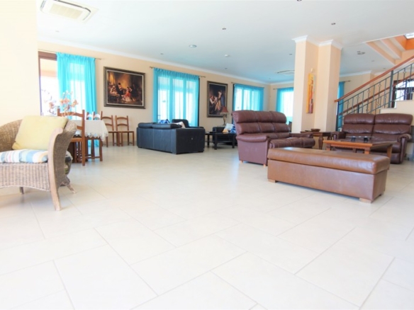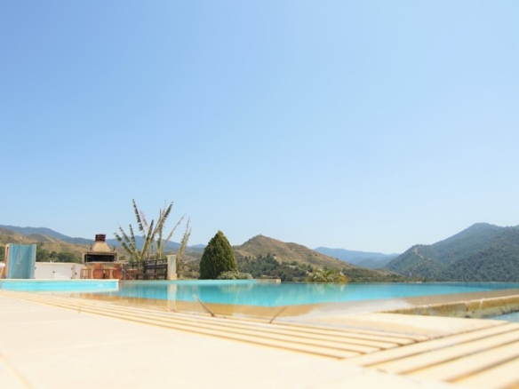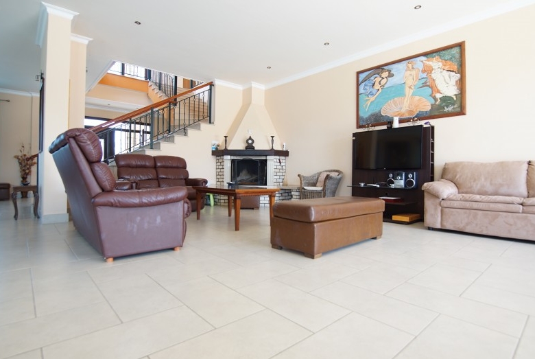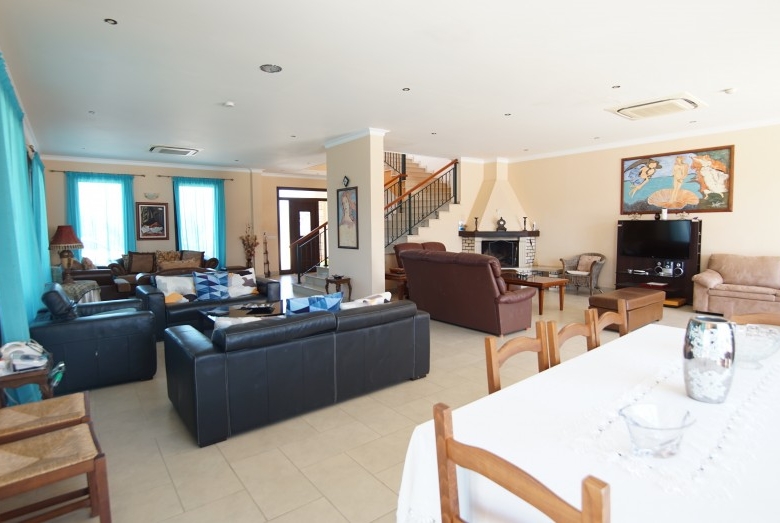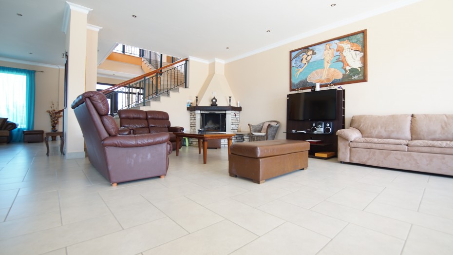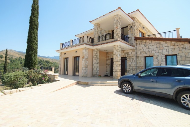 6-room villa in Argaka, Paphos. We are pleased to present to you this stunning stone villa set against a backdrop of majestic mountains and farmland. The villa is tastefully and lovingly designed and decorated by its owner. The villa offers accommodation to a high standard in a tranquil environment. The village center is nearby, but the sleepy coastline, dotted with local taverns, is also a short drive away. The coastline is perfect for calm and lazy days as you harvest your fresh day’s catch, or take a scenic drive to the tiny fishing harbor of Pomos. On the ground floor you will find the main living room, a well-equipped kitchen with an adjoining utility room, 2 double bedrooms and bathrooms. Sliding patio doors open onto a private covered deck and private infinity pool and heated jacuzzi. On the ground floor there are three double bedrooms, each with an en suite bathroom (Jacuzzi in the master bedroom) and fitted wardrobes. In addition, all bedrooms on this floor have their own balcony with mountain and sea views. In the basement you will also find a games room, a small gym and sauna, and a relaxation room. The large private area of 5000 m2 is surrounded by extensive cobbled grounds and manicured gardens. Next to the pool there is a poolside shower, seating area and barbecue. There is an opportunity to purchase another 5000m2 of private land adjacent to the house.