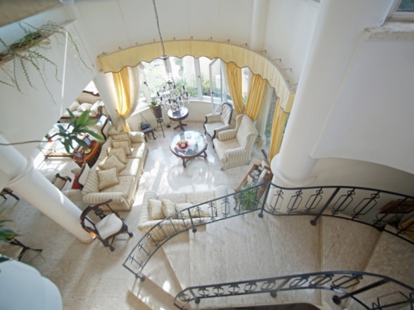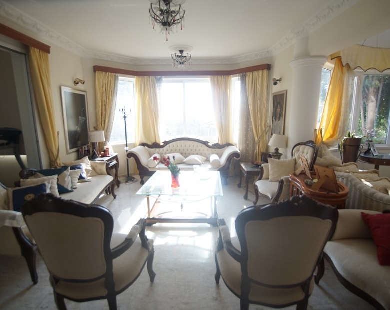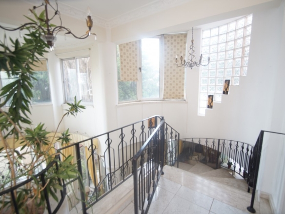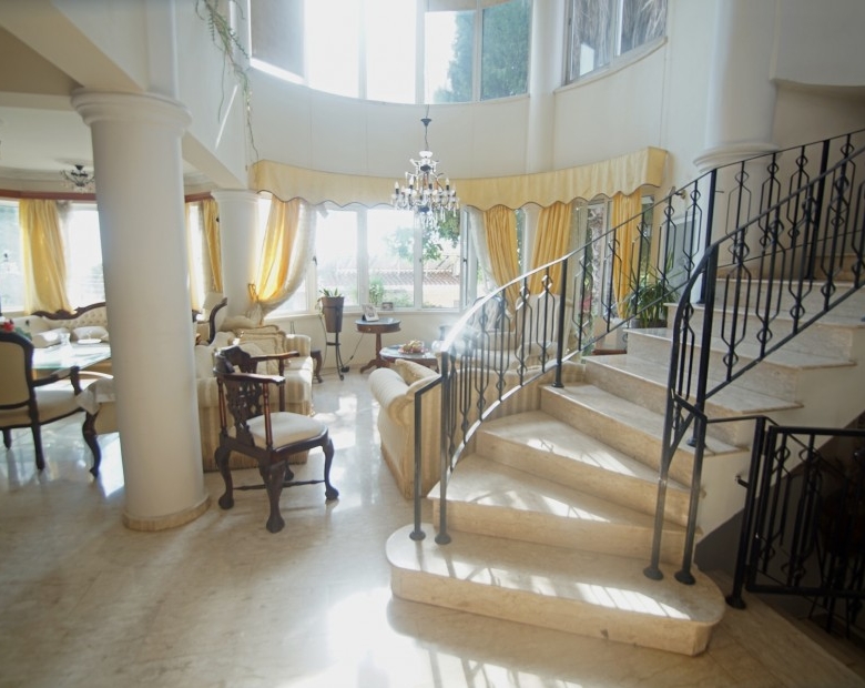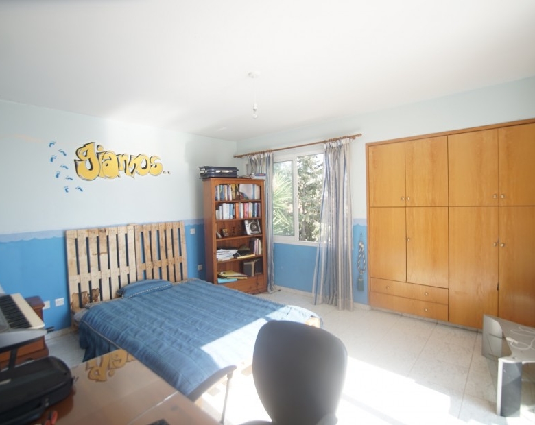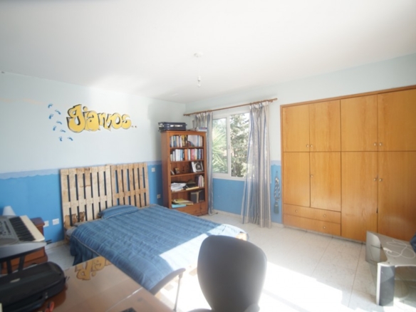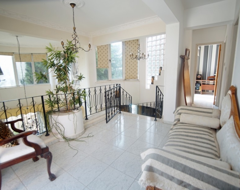 7 bedroom 3 bathroom 370m2 covered detached villa situated in heart of Chloraka close to the St.George Hotel and a short drive to Coral Bay. The villa is situated on a 2676m2 plot ,just a few hundred meters from the beachfront and benefits from air conditioning, study, marble stairs and private pool. Through the front door you enter into the entrance hall with extremely bright living area, to the right hand side,  curving stairs rising to the first floor where are located 3 double bedrooms, family bathroom, 2 balconies. Ground floor comprises from separate spacious kitchen with a small sitting area offering a fire place, master bedroom, guest toilet, 2 rooms witch can be used as an office or a gym room.
