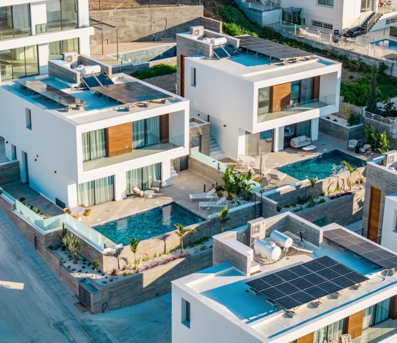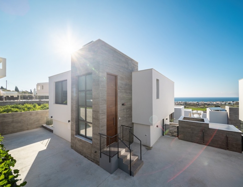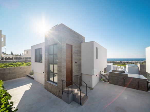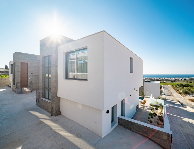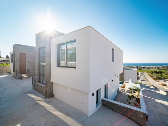 This beautifully presented, detached villa offers 152.70 m² of stylish and comfortable living space. Thoughtfully designed, it features three spacious bedrooms, two elegant bathrooms, and an additional guest W/C on the ground floor. The home is fully furnished to a high standard, making it completely move-in ready for its new owners. Situated in the highly desirable area of Chloraka, this villa enjoys a peaceful setting just moments from local amenities including shops, cafes, and schools. Chloraka is renowned for its charming village atmosphere, friendly community, and elevated position that allows for panoramic views and a refreshing sea breeze year-round. Designed for year-round comfort, the property includes a central air conditioning system and underfloor heating throughout. Step outside to a private swimming pool and spacious terraces, ideal for relaxing or entertaining while soaking in the stunning sea and countryside views. The villa also boasts a 7KW photovoltaic system and holds the highest energy efficiency rating (A) a perfect blend of luxury, sustainability, and low running costs.