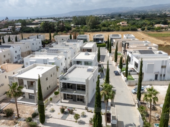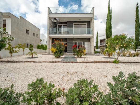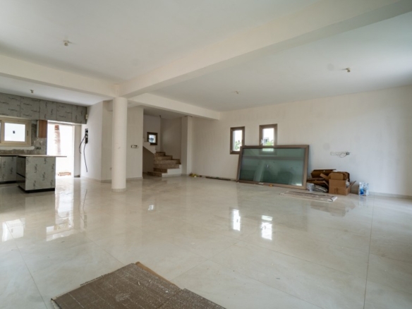 The property is located in a cul-de-sac, and upon arrival, one can see the driveway with the private parking space and the nice landscaped garden on the right side of the main entrance. Entering the villa, a spacious open plan lounge/ dining/ kitchen area appears with a guest toilet.