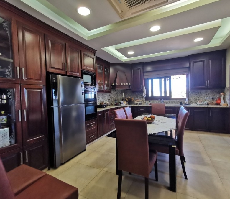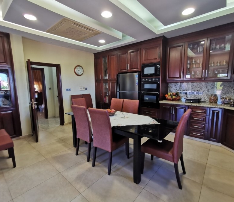 Nestled in the heart of the prestigious Empa area, this exquisite 4-bedroom, 4-bathroom villa is just a leisurely five-minute stroll from the vibrant Chloraka seaside main strip. Offering the perfect blend of tranquility and convenience, this property is designed to impress. From the moment you step inside, you are greeted by a sense of elegance and spaciousness. The ground floor showcases a beautifully designed layout that seamlessly integrates the separate kitchen with a dining table, along with the dining and lounge areas. Adjacent to the living area, you’ll find a charming office space, perfect for work or study. A guest cloakroom on this level adds a further touch of practicality to the design. Ascending the staircase to the first floor, you are welcomed by three stunning bedroom suites, each thoughtfully designed for comfort and convenience. Each suite features its own en-suite bathroom, with the master bedroom further enhanced by a private en-suite and access to a beautifully appointed balcony shared with the junior suite. A separate wardrobe area provides additional storage space. From the balcony, you can soak in breathtaking views of the azure Mediterranean Sea and the lush surrounding landscapes. The outdoor area is equally impressive, with a private swimming pool taking center stage, surrounded by various lounging and relaxation spaces that offer both sun and shade—ensuring the perfect spot for every moment of the day. A spacious BBQ area and beautifully landscaped gardens complete this idyllic retreat.