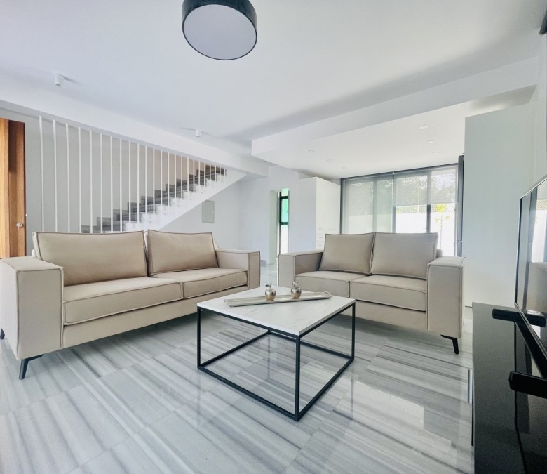 The 3-bedroom villa offers a private outdoor space that guests can relax in and a well maintained garden. As you enter you will find yourself in a modernly furnished living area, which glass patio doors will lead you to terrace where al fresco dining can be enjoyed whilst admiring the mesmerizing views of the garden. When reaching the first floor via the stairs there are 3 bedrooms. A master bedroom with king size bed, en-suite with a pool views. Completing the bedrooms on this floor are a further 1 double and 1 twin bedrooms. The outside area can be accessed from the ground floor where you will find the backyard garden area.Villa is located in Emba Village. Emba Village is a traditional Cypriot village with a small selection of Tavernas and shops and a beautiful 12th century church. A large supermarket and further restaurants and shops are a 5 minute drive away while the villa is a 10 minute drive away from Paphos with its lively harbor and many cafés and restaurants serving excellent local dishes in a beautiful setting. The blue flag beaches of Coral Bay which offer diving and a range of other water sports are also only a 15 minute drive away. Emba is also home to many chapels and churches, one large church has been recently built and others are very old little chapels. The village is charming with it’s winding roads and lemon, orange and nectarine groves. Agriculture is the main industry of the area and as well as citrus fruits there are also peaches. Emba has a few shops and tavernas dotted along the narrow winding road that runs through the village. In the evening the local men can be seen sitting outside their local coffee shops.
