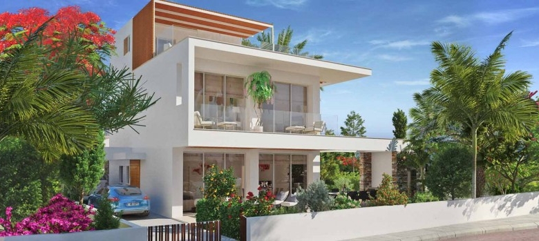 A modern design 3-bedroom villa for sale, located in the heart of the tourist area of Paphos in Cyprus. The property is designed in a large plot and enjoys a private swimming pool with spacious outdoor areas. The villa is located in front of one of the most famous sandy beaches in Paphos and enjoys easy access to a variety of restaurants, pubs, bars, 5-star beach resorts, and other amenities.