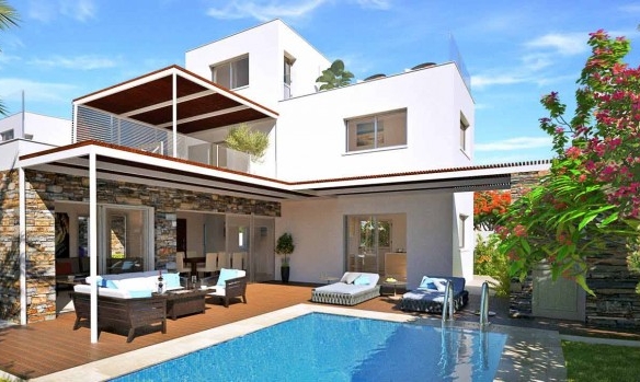 A modern design 3-bedroom villa for sale, located in the heart of the tourist area of Paphos in Cyprus. The property is designed in a large plot and enjoys a private swimming pool with spacious outdoor areas. The villa is located in front of one of the most famous sandy beaches in Paphos and enjoys easy access to a variety of restaurants, pubs, bars, 5-star beach resorts, and other amenities.