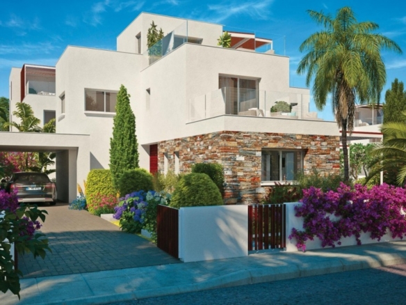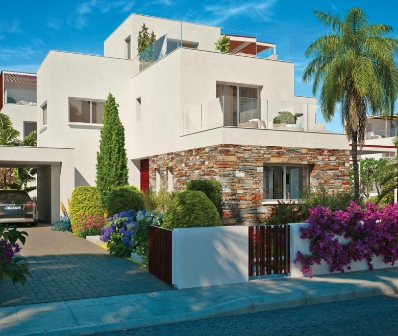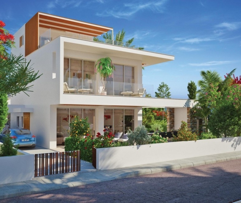 A modern design 3-bedroom villa for sale, located in the heart of the tourist area of Paphos in Cyprus. The property is designed in a large plot and enjoys a private swimming pool with spacious outdoor areas. The villa is located in front of one of the most famous sandy beaches in Paphos and enjoys easy access to a variety of restaurants, pubs, bars, 5-star beach resorts, and other amenities.
