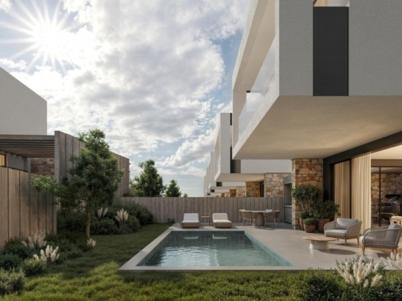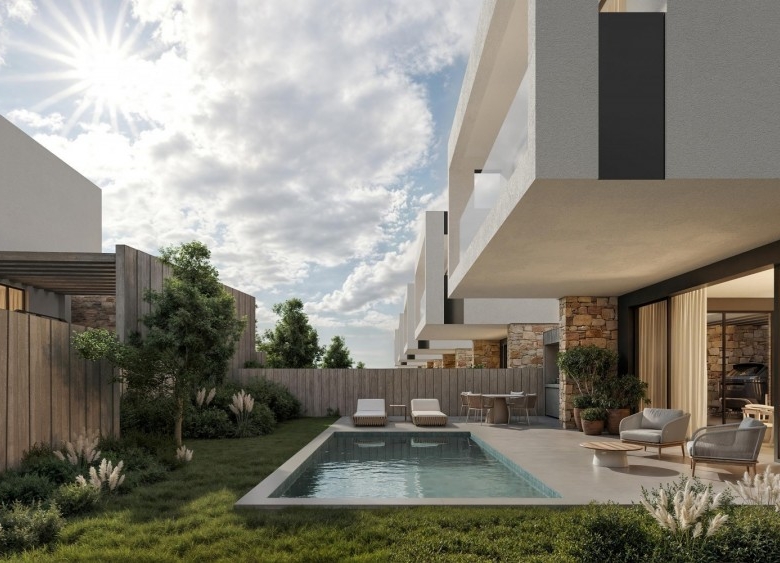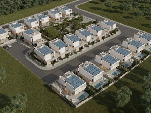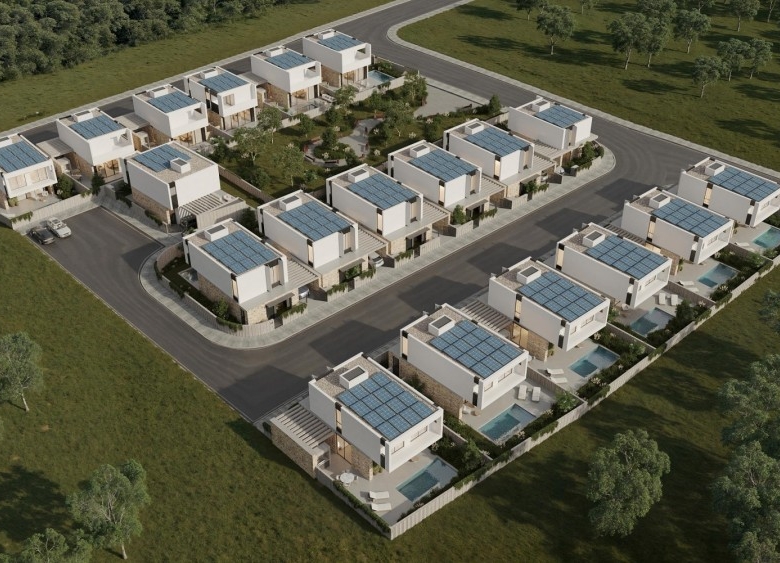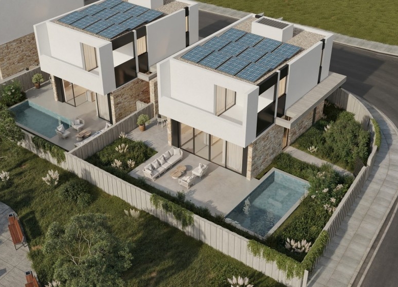 Boutique collection of 19 three-bedroom luxury villas in Geroskipou, crafted for modern comfort and style. Each home features sleek open-plan living beneath 3.10 m high ceilings, with floor-to-ceiling glass doors flooding interiors with light. Premium amenities include underfloor heating zoned per floor, a VRV cooling system, full thermal insulation, and a photovoltaic system everything is included in the price. Optional private pools, expand outdoor living, while security systems, a water filtration setup, and walk-in showers elevate daily convenience. Outside, two-car parking with electric gates and a built-in BBQ area complete the picture. Project delivers contemporary elegance and efficiency in one of Cyprus’s most sought-after neighborhoods.Delivery-June 2027