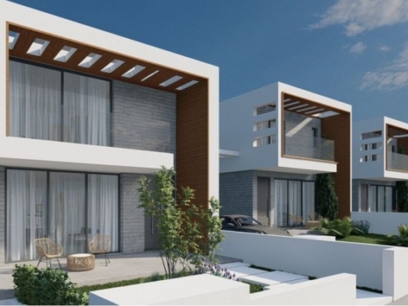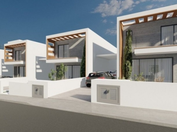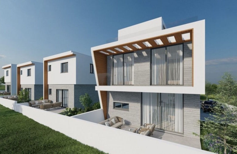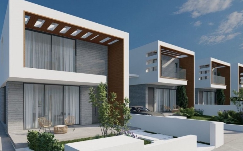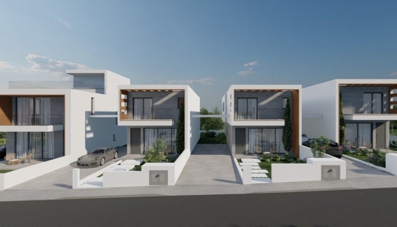 New complex in the residential area of Geroskipou – Agia Marinouda, Paphos. The project consists of only 4 separate 3-bedroom villas in a beautiful modern design.The project provides for the installation of a water pressure system, external thermal insulation, laminate flooring in the bedrooms, suspended ceilings, underfloor heating, Freematch -VRV air conditioning system, alarm system, electric gates. In addition, it is possible to connect a photovoltaic system. There is a private swimming pool on site. Energy certificate of class A. There is also a parking space with the possibility of connecting an electric vehicle.All amenities are within walking distance, including a supermarket, kiosks, coffee shops, bakeries, pharmacy and more. The complex is located just 5 minutes from the most popular sandy beach of Paphos and the city center with easy access to Limassol Highway and Elea Golf Club.