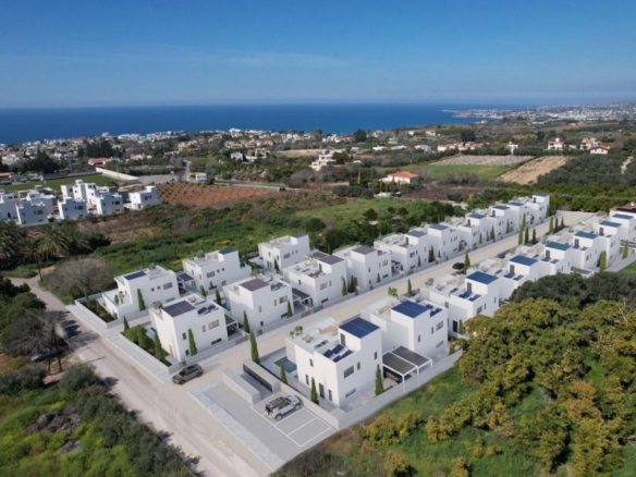 This unique villa in Kissonerga Village on the outskirts of Paphos features impressive modern architecture with spacious and comfortable areas in green surroundings. This breathtaking three-bedroom villa, within walking distance of the beach and many local amenities, combines simplicity and practicality and offers scenic views of the Mediterranean Sea.Delivery – 18 months.