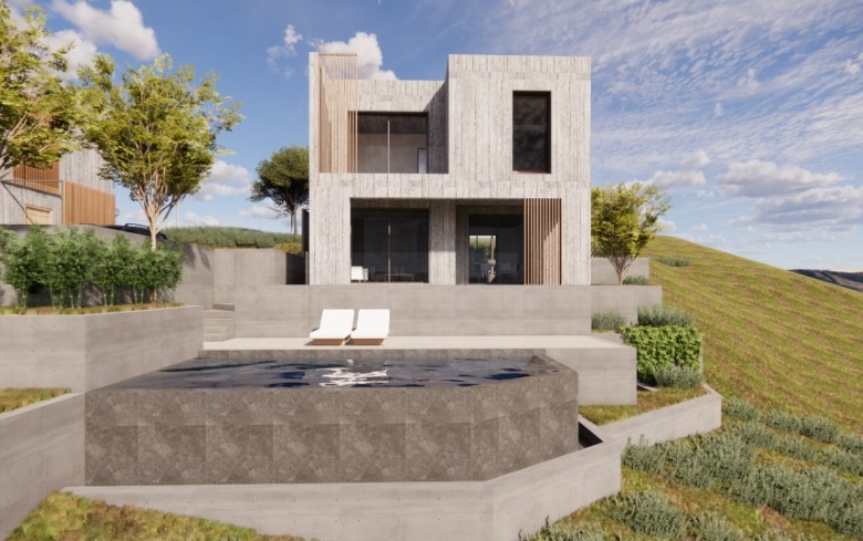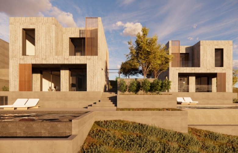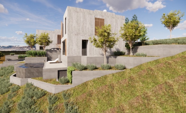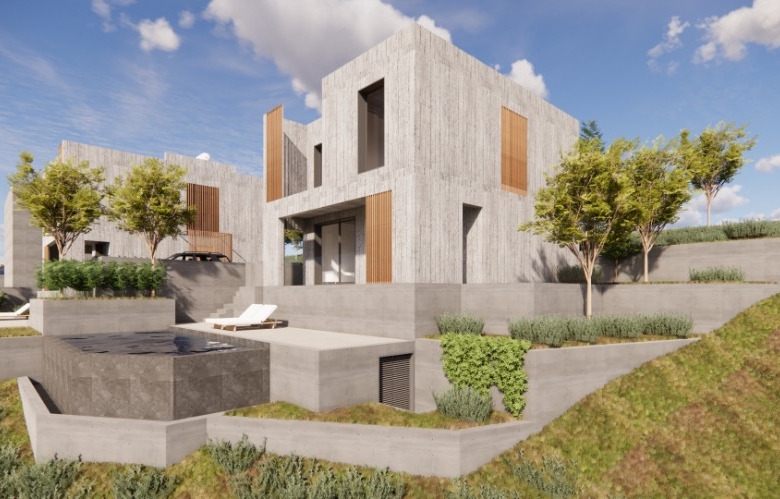 Unique residential project in the prestigious area of Konia, Paphos. This exclusive development features two exceptional villas, designed to offer a perfect blend of luxury, comfort, and contemporary architecture. Each villa is characterized by a sophisticated design with board-form concrete exterior walls, creating a modern aesthetic. The spacious interiors include three elegantly designed bedrooms and open-plan living areas that maximize space, functionality, and natural light. High-end materials and premium finishes ensure durability and refined elegance throughout the property. The outdoor spaces are thoughtfully designed, featuring beautifully landscaped gardens and a private swimming pool, ideal for relaxation and entertainment. Expansive verandas and carefully planned outdoor areas enhance the sense of tranquility, offering the perfect setting to enjoy the Mediterranean sun. Ideally located in one of Paphos’ most sought-after yet peaceful residential areas, these villas offer easy access to local amenities, international schools, and the city center while providing a peaceful and exclusive living environment.
