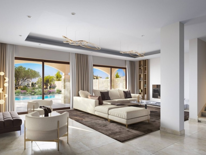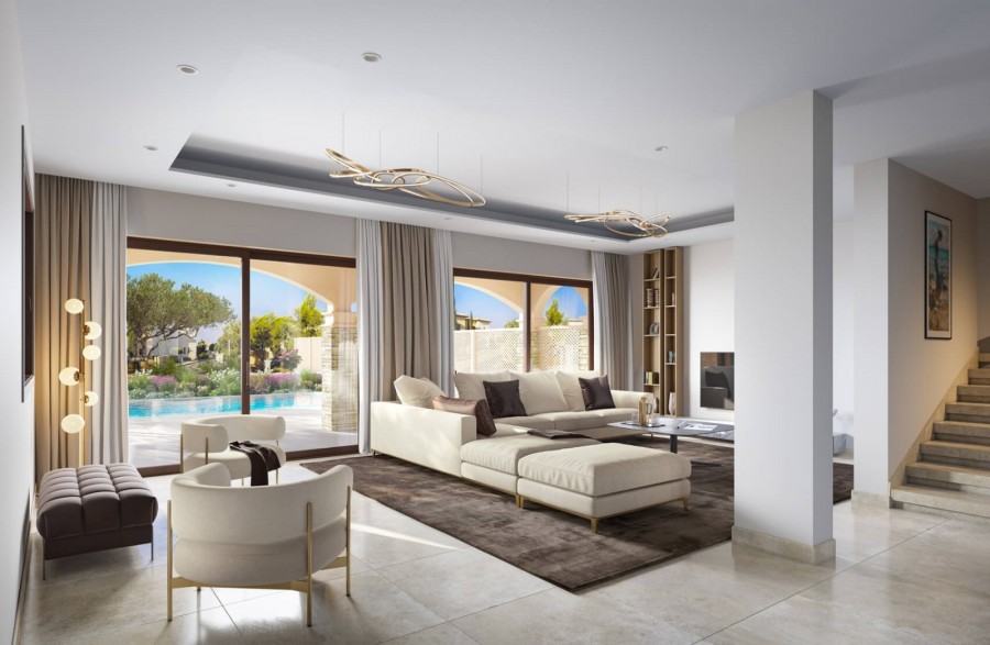 Conveniently situated in the centre of all amenities, one of the most privileged developments. Due to its prime location and state-of-the-art features and finishes, this project offers the highest level of Mediterranean lifestyle. Located right next to the PGA National Cyprus Golf Course and within walking distance to the Resort’s facilities, which include the Tennis and Football Academies, PGA National Golf Course, the Retreat Spa, plus numerous bars, restaurants, and shops. The perfect location for a perfect property.These stylish and contemporary semi-detached villas offer an exceptional and private location for discerning buyers who expect first-class interiors and delightful exteriors beyond compare. Designed for luxurious Mediterranean living and elegant entertaining, they offer light and airy open-plan living areas and oversized terraces. An effortless lifestyle is assured with provisions for underfloor heating, concealed dual air conditioning/heating, home automation system provisions, and a discreet security system.The elegant sitting room sliding doors lead to a generously sized veranda for alfresco dining and entertaining with an immaculately landscaped garden comprising flowers, shrubs, and trees, and a private swimming pool with infinity edges and provision for heating.