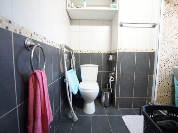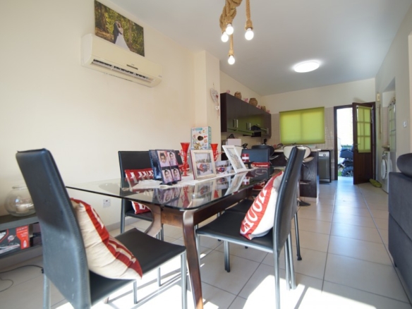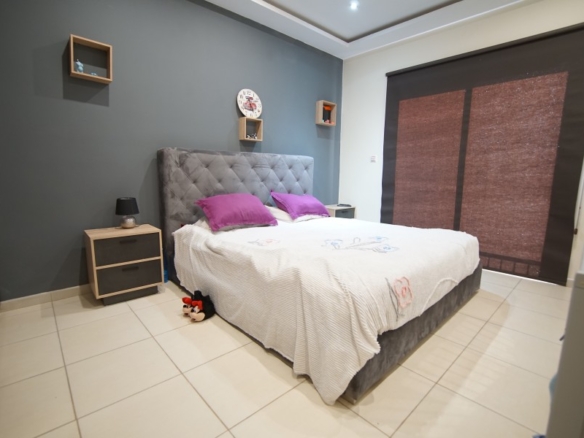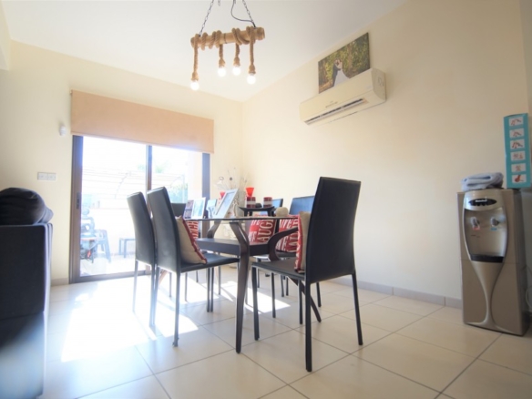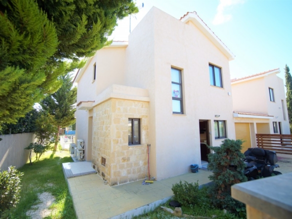 This cozy 3 bedroom, 2 bathroom villa is located in a quiet area in the Venus Rock Resort, also known as the Secret Valley. Entrance to the property through the front door leads directly into the spacious, bright, and airy dining and living area which has two sets of patio doors leading out to the terrace. There are air conditioners on the walls. Through the living room, you can enter the immaculate, spacious kitchen, equipped with modern appliances, large work surfaces, and storage cabinets. The patio door leads to the rear garden. There is also a guest toilet on this level. On the first floor are three good-sized bedrooms with floor-to-ceiling wardrobes, and air conditioning. Each of the bedrooms has its own balcony. The master bedroom has an en-suite bathroom with a shower, washbasin, and toilet, while the family bathroom serves the two guest bedrooms. The hotel has a lovely 8m x 4m tiled swimming pool and plenty of space for sunbathing and al fresco dining. This is a superb property in a very quiet location, ideal for a permanent or holiday home. Venus Rock is a popular residential area nestled in the hills above the Secret Valley golf course, a ten-minute drive from Paphos International Airport. The resort is close to the highway connecting Paphos and Limassol.