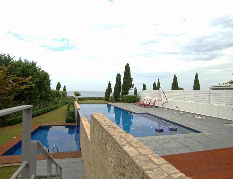 Amazing 4-bedroom villa + huge 1-bedroom guest apartment in the basement with access to a private pool and veranda, located in an elite, secure, and serene coastal complex in Akamas Bay, located in the most beautiful part of the island near the Akamas Peninsula. A private haven of outdoor beauty and indoor luxury, with stunning views of the sparkling blue sea and endless sky, the properties combine harmonious architecture and outstanding design.Spacious villa, filled with fresh air and sunlight, located on the first line of the sea with access to the beach, a completely landscaped plot, all with original design, floor-to-ceiling windows, and a large terrace on the roof. The interior combines contemporary elegance with traditional Cypriot simplicity to create a style that organically reflects the natural Mediterranean lifestyle. The house has everything you need for a comfortable stay and relaxation. All bedrooms are equipped with bathrooms, and the master bedroom, which is located on the top floor, is equipped with a private jacuzzi overlooking the coast. It is difficult to find words for the description, so we strongly recommend that you visit this villa and see all the delights with your own eyes.