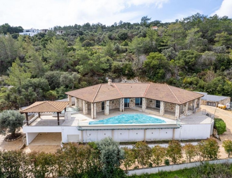 The property is a 3 bedroom house with a swimming pool in Neo Chorio. It is located 800m from the center of the village and 750m from Neo Chorio-Polis Chrysochous road. The house has a covered area of 220sqm and it is built within a land area of 14,382sqm. It consists of an open plan dining room, a kitchen, a living room with fireplace, a sauna, a guest’s WC, 3 bedrooms with an ensuite shower with a toilet and a master bedroom with a walking closet, an extra bathroom with a WC and a veranda. Externally is facilitated by a private swimming pool with a patio perimetrically, a kiosk, a covered parking place, a shower, a BBQ area, a plant room and perimetrical fencing. The property enjoys stunning views of the surrounding region and the sea. It offers close proximity to amenities such as mini markets, traditional taverns and cafes. The nearest beach is 7mins drive away.