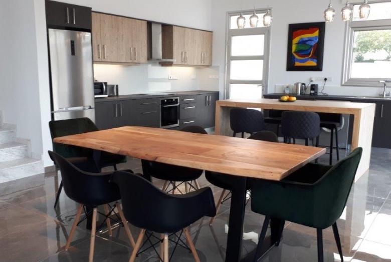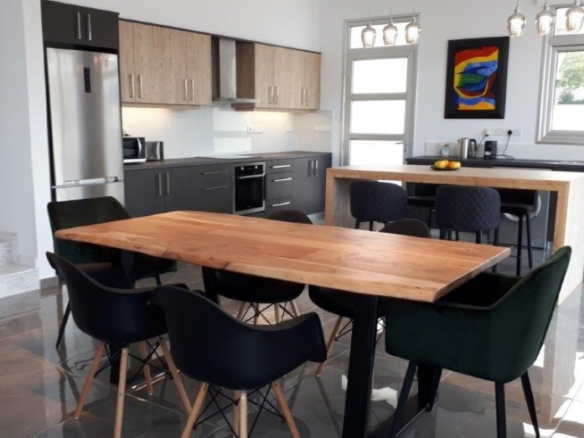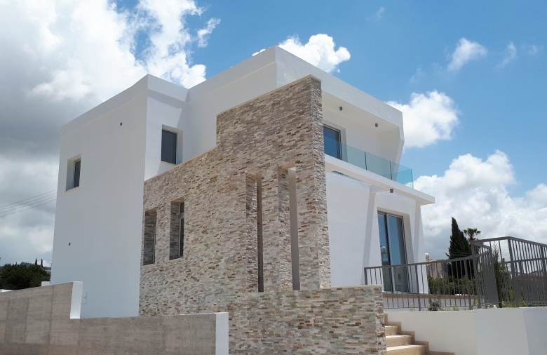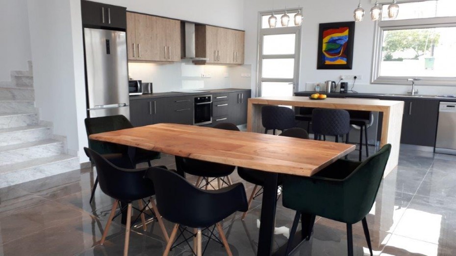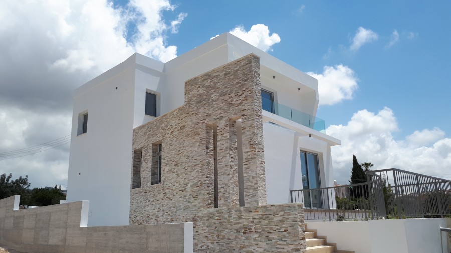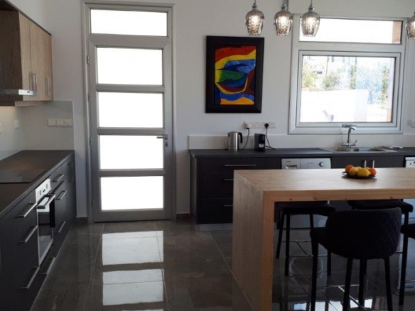 This beautiful 3-bedroom 4 bathroom villa is situated in a big plot of approximately 410 m2 and a covered area of 195 m2. The property offers an open plan living/dining area fully furnished and equipped with high-quality finishes. Additionally,y there is a guest toilet on the same level. Sliding patio doors open towards the pool and the big plot. It features landscaped gardens, double private parking, a large private pool, and comes fully furnished, all of the bedrooms have en-suite bathrooms and are double glazed. There is air conditioning throughout as well as central heating provisions and fitted wardrobes. Peyia is a town in Cyprus with a population of approximately 10,000 residents. Peyia is situated mainly on the steep slopes of the coastal hills inland from Coral Bay, at the southern end of the Akamas Peninsula, and it lies 14 km north of Paphos. It has a large population of British expats and a growing number of holiday homes and apartments. In the town center can find a town hall, a church, a police station, and several small shops, restaurants, and banks. Due to its hillside location, many parts of the town offer views over Coral Bay and Paphos.