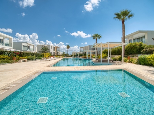 This villa features 4 bedrooms and is conveniently located near the sandy beach. Offering a private swimming pool, spacious verandas, and sun terraces, these villas provide breathtaking views of the Mediterranean. Additionally, the estate includes available plots of land for sale, complete with building permissions for constructing houses. All essential amenities such as well-maintained asphalt roads, electricity, water supply, lighting, and drainage are readily available. Situated on the outskirts of one of the finest beaches in the Paphos region, this area is renowned for its exclusivity in the real estate market of Cyprus.