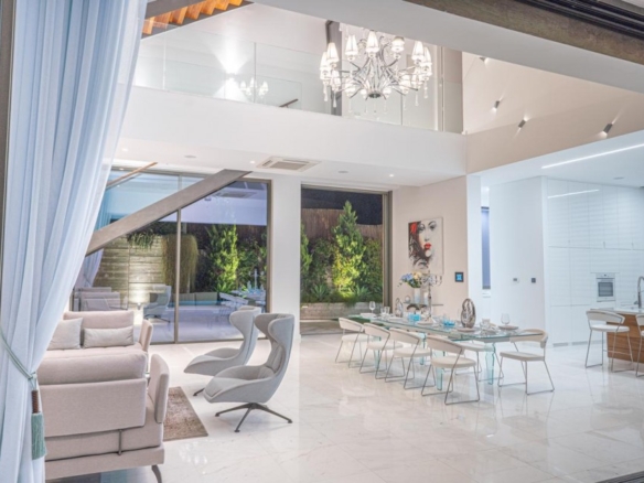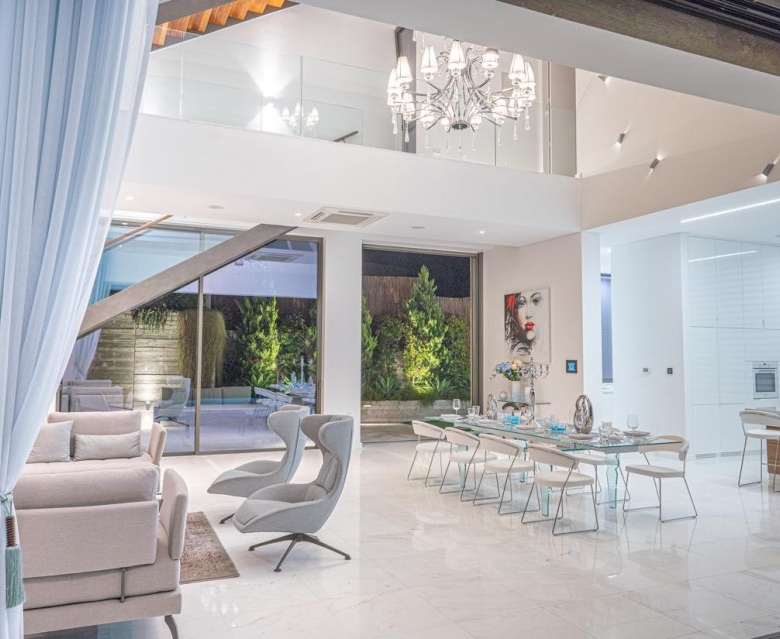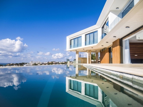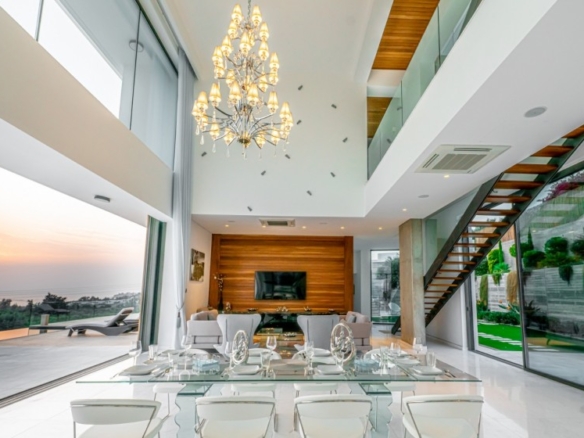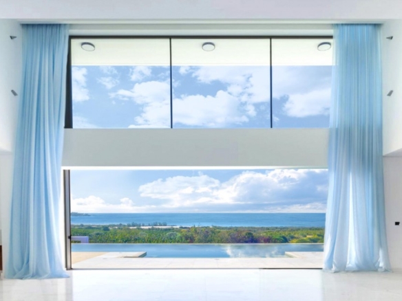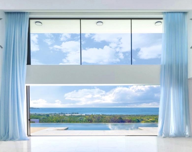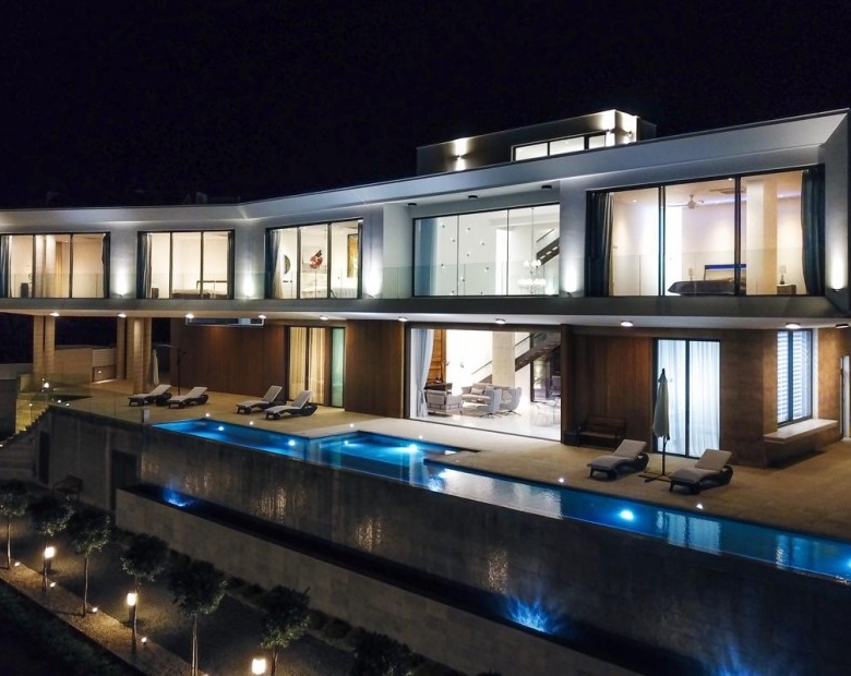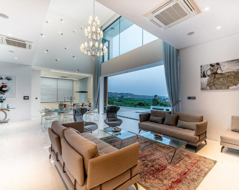 The residence is located 100 meters from one of the most large-scale and ambitious construction projects in Cyprus – a resort and entertainment residential complex Coral Bay Marina, the cost of which is estimated at 600.000.000 euros. Alezone has the largest private land plor at the walking distance from the future Marine and is a unique project in this district. For 3 months in 2017, the houses adjacent to the Coral Bay Marina project were sold at 10,000 euros per sq.m., the land area of each plot did not exceed 500 sq.m.· Coral Bay is the elite and most popular resort in the south-west of the island.· Coral Bay is one of the three territories – applicants for opening a casino in Cyprus.· In Coral Bay area, the largest offshore oil and gas deposits in the Mediterranean were explored.gives you an opportunity EU citizenship as a gift!!is a state-of-the-art design in hi-tech style from the leading European architectural bureau Vardas Studio.UNIQUE ARCHITECTURAL SOLUTIONSThe house is spread to the sea in such a way that all the rooms and bedrooms have a view of the seaDouble-glazed windows in the living room on the two sides, at the opening go into the walls at 100%, combining just three zones – a winter garden, a living room and a patio with a jacuzzi and a swimming pool, which visually increases the space of the living room in several times, making it a part of a unique beautiful landscape.The original design of the bedrooms simultaneously makes them loggias All bedrooms are designed as hotel suites – the area of each is more than 30 sq.m., each has its own dressing room, bathroom and a small recreation area.Sea and mountain views open up from all bathrooms, two bathrooms have glass walls.The height of the ceilings of the living room is more than 8 metersThere is also a winter garden, which, in fact, is part of the living room, increasing its area in two times.In fact, the house consists of two buildings separated with anti-seismic seam, allowing to withstand loads that exceed the accepted standards in several times.The main house does not have a basement and a wall adjacent to the mountain, which completely excludes the appearance of the fungus that is traditional for the island the combination of advanced technology and quality of construction, exceeding the established European standardsADVANTAGES OF CONSTRUCTIONThe house was built by one of the most reliable developers of Cyprus! The Sarides Bros Construction building company specializes in individual projects, has long-term experience and impeccable reputation among its clients as a diligent builder of quality housing.Only high-quality materials are used in the construction process! During the construction of the house, without exaggeration, the most advanced building materials from the leading manufacturers of Germany, Japan and Italy were used.Up to 90% savings on electricity due to the abundance of the solar energy! In order to optimize electricity costs as much as possible, the house is equipped with solar batteries of the latest generation capable of covering from 50% to 95% of electricity consumption thanks to solar energy, depending on the degree of load on the system Up to 90% savings on water are now possible due to the use of a well ! On the territory of the residence, a 30-meter well was explored and put into operation, which, taking into account the land area, will allow to economize rather significant amount of funds due to, essentially, free water for irrigation. Structural flaws of the building are excluded! The main building was intentionally erected within 24 months in order to observe the necessary sequence of construction procedures and eliminate any structural flaws. Double thermal insulation! All facade walls, including the foundation and the roof, have thermal and sound insulation in addition to GOSTs/ State Standards, of such quality that in summer it is not always necessary to use air conditioning and winter heating.Enhanced strength and seismic resistance of the building! The highest cement grade available in Europe today has been used during the construction of the building. In terms of quantity of metal, the metal frame used in the construction exceeds the requirements of GOST twice.Advanced and ultra-reliable water heating system! The most advanced German solar water heating equipment ROLF has been installed in the house. All engineering structures have been made of high-strength and high-quality materials. The heating system is capable of withstanding a temperature of more than 100 degrees C in the event of long emergency power outage.The most advanced double-glazed windows on the market! Almost for the first time in Cyprus, insulated double-glazed windows with a superfine frame and revolutionary glass characteristics from German manufacturer RABLE have been used for the construction of the house, providing one of the highest possible light reflection and energy saving ratios in the market.Automatic standby heating systems of the latest generation! The building is equipped with two redundant heating systems, gas and electric. Both systems include equipment from the leading Italian manufacturer and are operated including by means of wi-fi. Sports pool without chlorine with heating and jacuzzi! The swimming pool model is infinity, made according to an individual project, its form is not typical for Cyprus, it was designed for sports activities and includes a Jacuzzi. Mechanisms, filters and all equipment of the last generation of chlorine-free ecological swimming-pools have been provided by the leading German manufacturer PROXIM.is an impeccably stylish interior design, embodied in quality finishing with valuable materials and branded equipment According to the idea of the designer – the natural landscape of the land where the house is located, is a diamond and the building is unable to compete with the beauty created by nature, but it is intended to become a framing, concisely emphasizing this