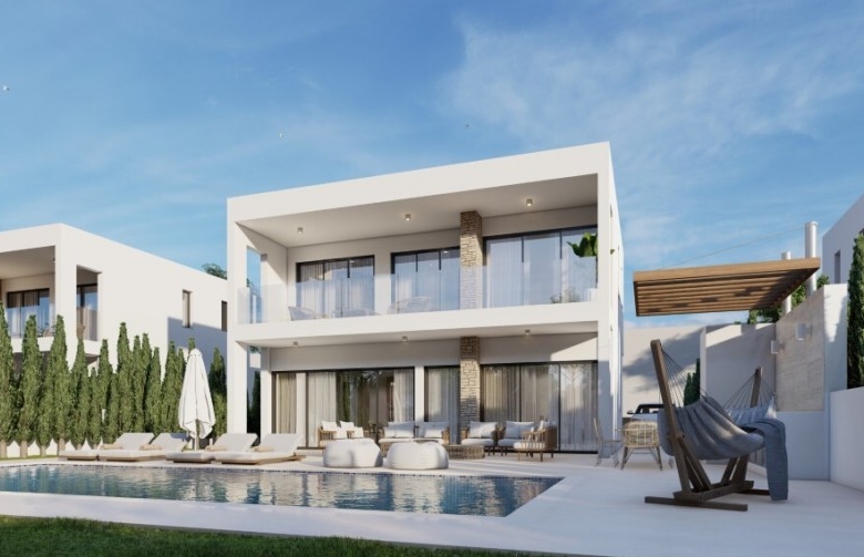 Located in the Cap St George Area, at the edge of the Akamas Peninsula and mere minutes away from beautiful sandy beaches, this project consists of luxurious villas, each with a private pool and lush garden. The 3-bedroom villas available will be constructed to a very high standard using nothing but quality materials. In addition to spacious open living and dining areas, fully equipped kitchens, luxurious en-suite bathrooms, and large floor-to-ceiling windows, the original plan offers spectacular views of the outdoors. Outdoors, the villas boast their private pool, as well as a stone-laid patio and BBQ, perfect for dining alfresco or creating a relaxing summer lounge area. Furthermore, it is only a short drive from the residences to Coral Bay, a popular beach with crystal clear waters. Future residents can enjoy the local culture, sandy beaches, vibrant nightlife, and restaurants serving international and local cuisines in the area. Additionally, it is next to all amenities, such as a medical clinic, supermarket, and private schools.