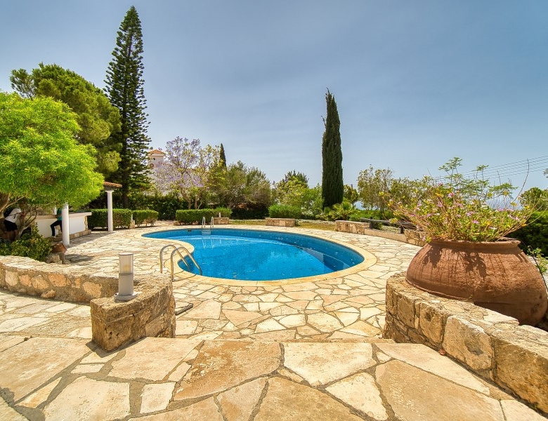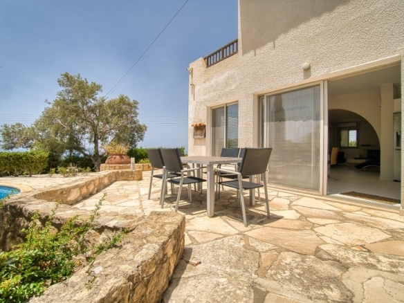 Lovely 3 bedroom detached villa for sale in Zelemenos Kamares Village build by Leptos developers. Tala, which has sea views, built above the humidity level on an established complex with communal pools and green areas. Kamares is an award-winning development with the traditional stone-built theme throughout the area and it also has a clubhouse, tennis courts and a medical center. Carport covered parking. Steps leading up to the property with a landscaped garden and seating area. Enter into a hallway which leads through to a welcoming living/ dining room, semi-separate kitchen & a guest WC. Upstairs there are 3 double bedrooms, family bathroom, master has en- suite. two bedrooms have sea views. Externally there is a relaxing garden and private pool. This property has had many upgrades, AC, shutters, fly screens, electric heating, sunshade carport, solar heated water system with pressure pump, gas feature fireplace and many more.Full title deeds & Unfurnished