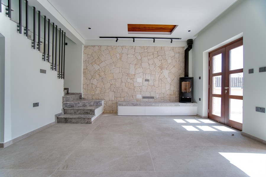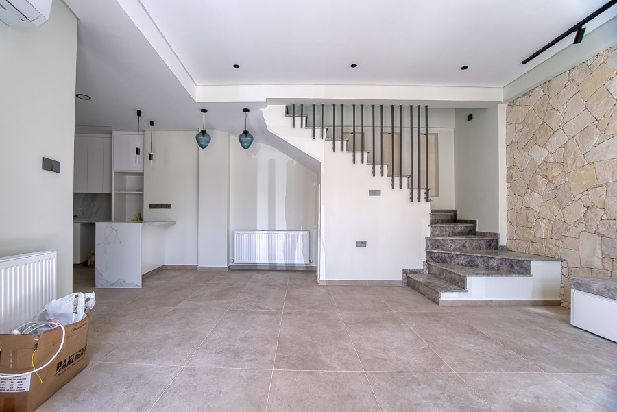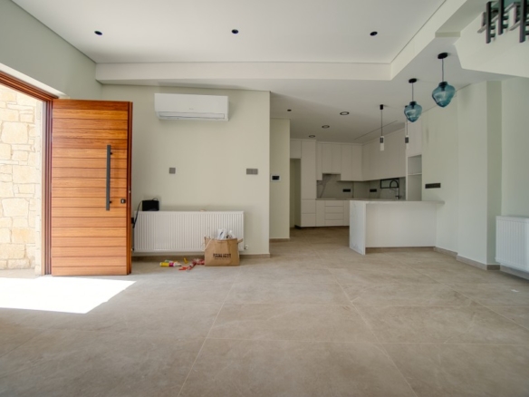 Nestled in the charming village of Tremithousa in Paphos, this beautifully designed semi-detached villa offers a perfect blend of comfort, style, and practicality. The property spans 120m² of covered space and 30m² uncovered veranda on a 145m² plot and features three spacious bedrooms, including a master with an en suite bathroom. The villa is thoughtfully equipped with modern conveniences such as air conditioning, central heating, double-glazed windows, and provisions for electric shutters and EV charging. A sleek open-plan kitchen and a cozy fireplace create a warm and inviting atmosphere, ideal for everyday living and entertaining.Enjoy breathtaking panoramic mountain and sea views from the private roof garden, and take advantage of the property’s outdoor barbeque area for relaxed al fresco dining. With a guest toilet, pressure pump, and private uncovered parking, the home is designed with functionality in mind. Located just five minutes from the town center, 15 minutes from the beach, and a 30-minute drive to both the airport and golf courses, this Energy Class A-rated villa offers the perfect balance of village tranquility and urban accessibility. VAT is applicable, and the property is offered unfurnished, ready for you to make it your own.