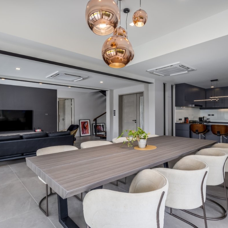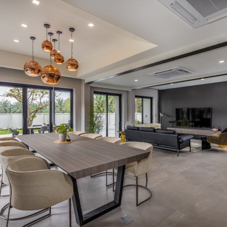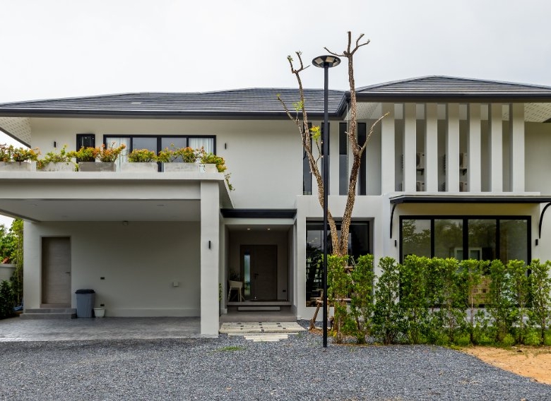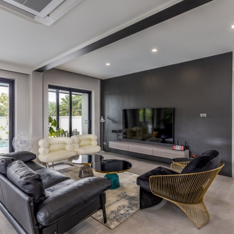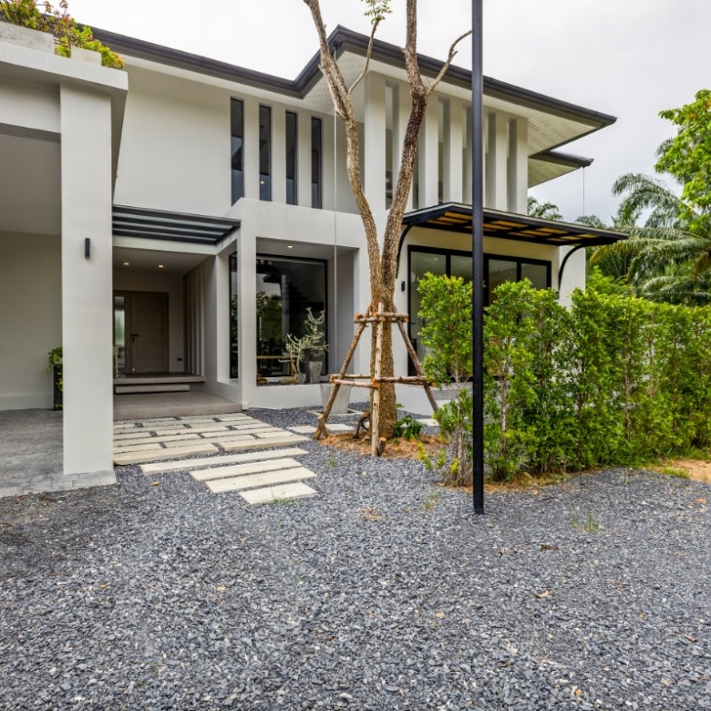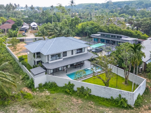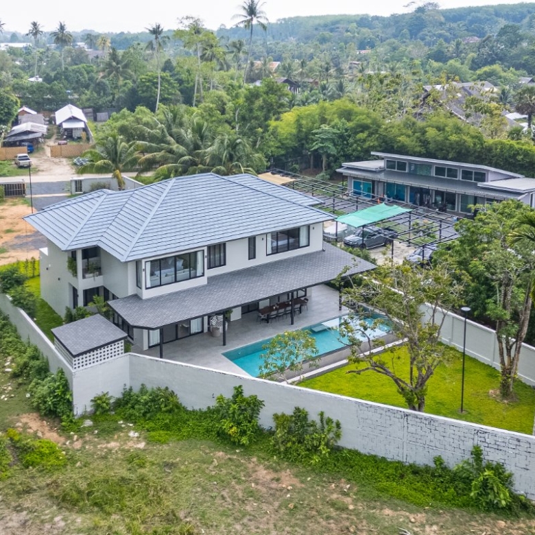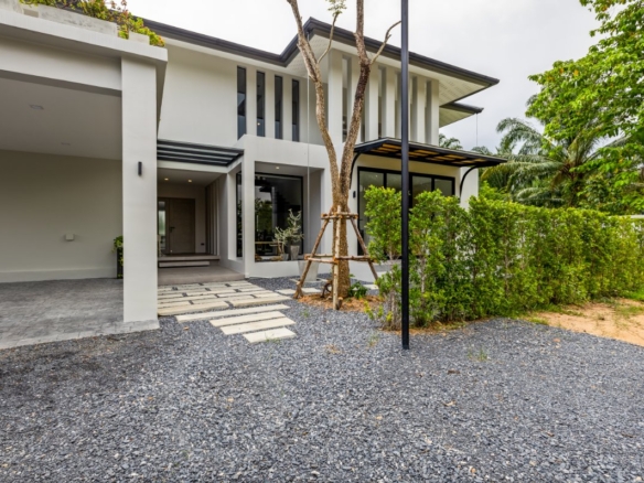 Villa Jinny – Fully Renovated 4-Bedroom Private Villa in Paklok, East Phuket Experience the perfect fusion of modern elegance and tropical tranquility with Villa Jinny, a fully renovated 4-bedroom private villa situated in the serene Paklok area on Phuket’s east coast. This double-story residence offers 339 m² of refined indoor living space complemented by 147 m² of outdoor areas, all set within a generous 1,332 m² land plot. Key Features: Spacious Bedrooms: Four generously sized bedrooms, each with ensuite bathrooms. The villa includes two luxurious master suites featuring walk-in closets and spa-like bathrooms with bathtubs and rain showers. Modern Living Spaces: An open-plan living and dining area seamlessly connects to a fully equipped Western kitchen, leading out to the pool and garden areas. Outdoor Oasis: Enjoy a 12-meter saltwater pool accompanied by a 60 m² covered terrace, ideal for alfresco dining and entertaining. The expansive garden offers ample space for children to play or the potential to develop private sports facilities. Additional Amenities: A flexible staff room with an ensuite bathroom can serve as an office or guest quarters. The property also features a double carport, electric gate, and a well-lit entrance for enhanced privacy and security. Ideal Location: Villa Jinny is strategically located for both convenience and lifestyle, offering easy access to Phuket’s premier amenities: 6 minutes to Yamu Pier 7 minutes to COMO Point Yamu Resort 8 minutes to Ao Por Marina 10 minutes to Finnway International School 20 minutes to UWC and BISP International Schools 30 minutes to Phuket International Airport Investment Potential: With its recent comprehensive renovation completed in February 2025, Villa Jinny is move-in ready and presents a compelling investment opportunity. The property’s expansive land plot allows for future expansion, whether for a guest cottage, home office, or additional villa. Its proximity to international schools, marinas, and luxury resorts enhances its appeal for both long-term residence and rental prospects. For more information or to schedule a private viewing, please contact us at ThaiEstate.